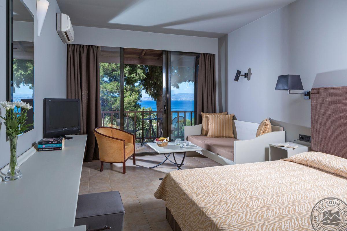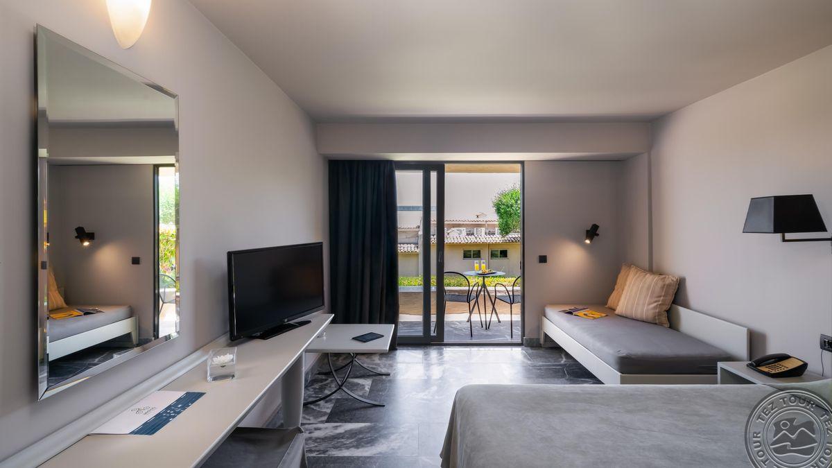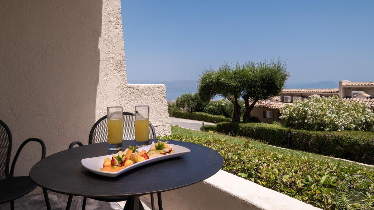Deluxe Sea View tipo numeriai (pagrindiniame pastate, vieno kambario numeris, pagr. lova – king-size tipo lova, papildomai – viengulė lova, deluxe vonios reikmenys – chalatas ir šlepetės, maks. 3 asm., 25 m2). Atvykimo dieną – vaisiai ir vyno butelis numeryje.