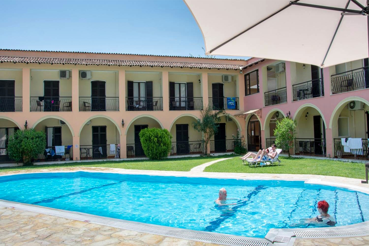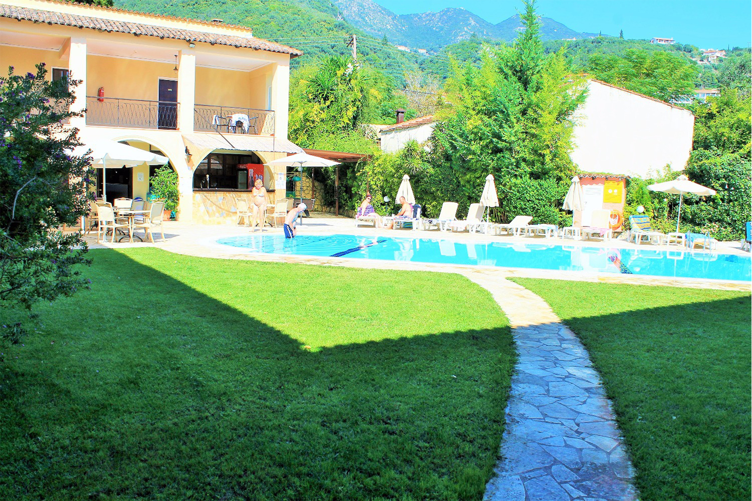 The hotel is located on the outskirts of Ipsos. This popular and lively resort is ideal for families, couples, and independent travelers. The hotel is 150 meters from the pebble beach of Ipsos, offering picturesque views of Corfu Town, mainland Greece, and Albania. Water sports are also available. Nearby are numerous bars, restaurants, shops, and a public bus stop to Corfu Town.