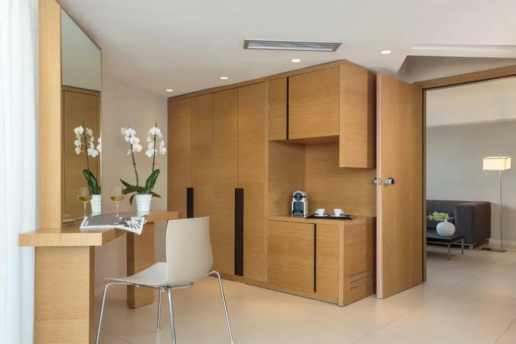 • Kavos ir arbatos ruošimo rinkinys (kai kuriuose kambariuose)