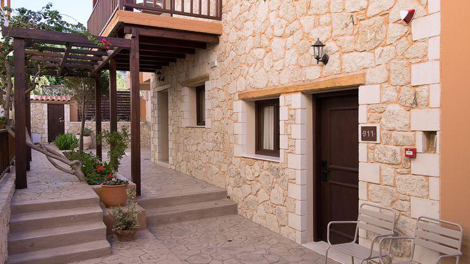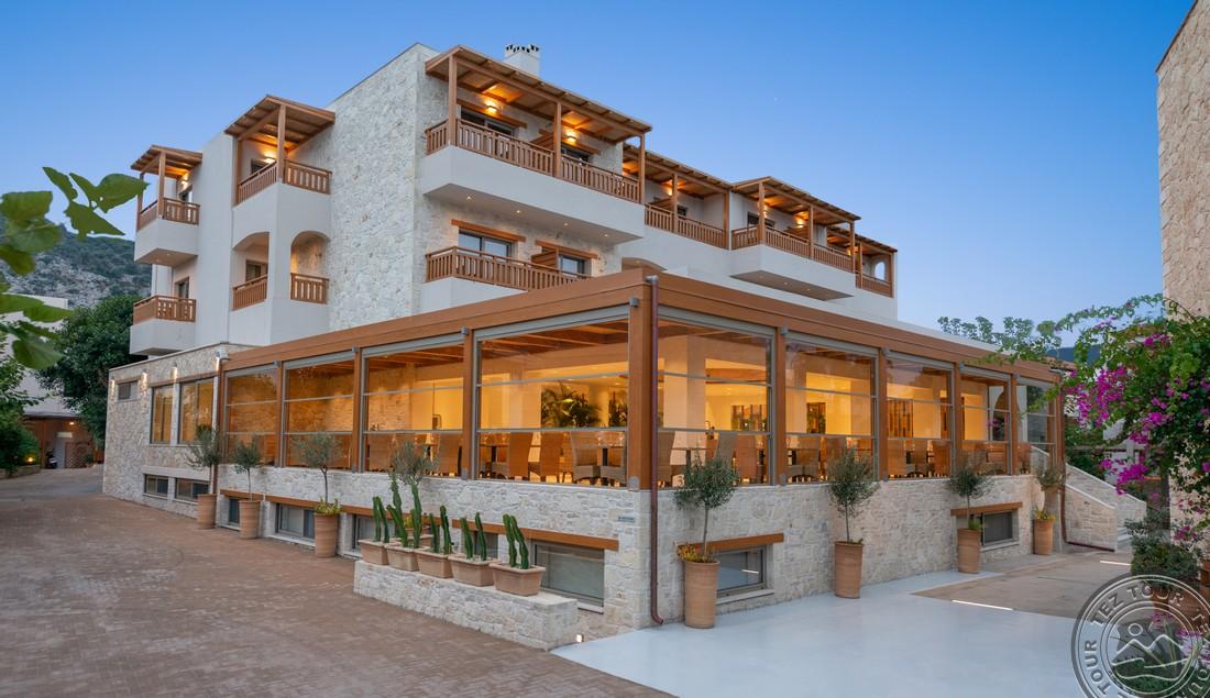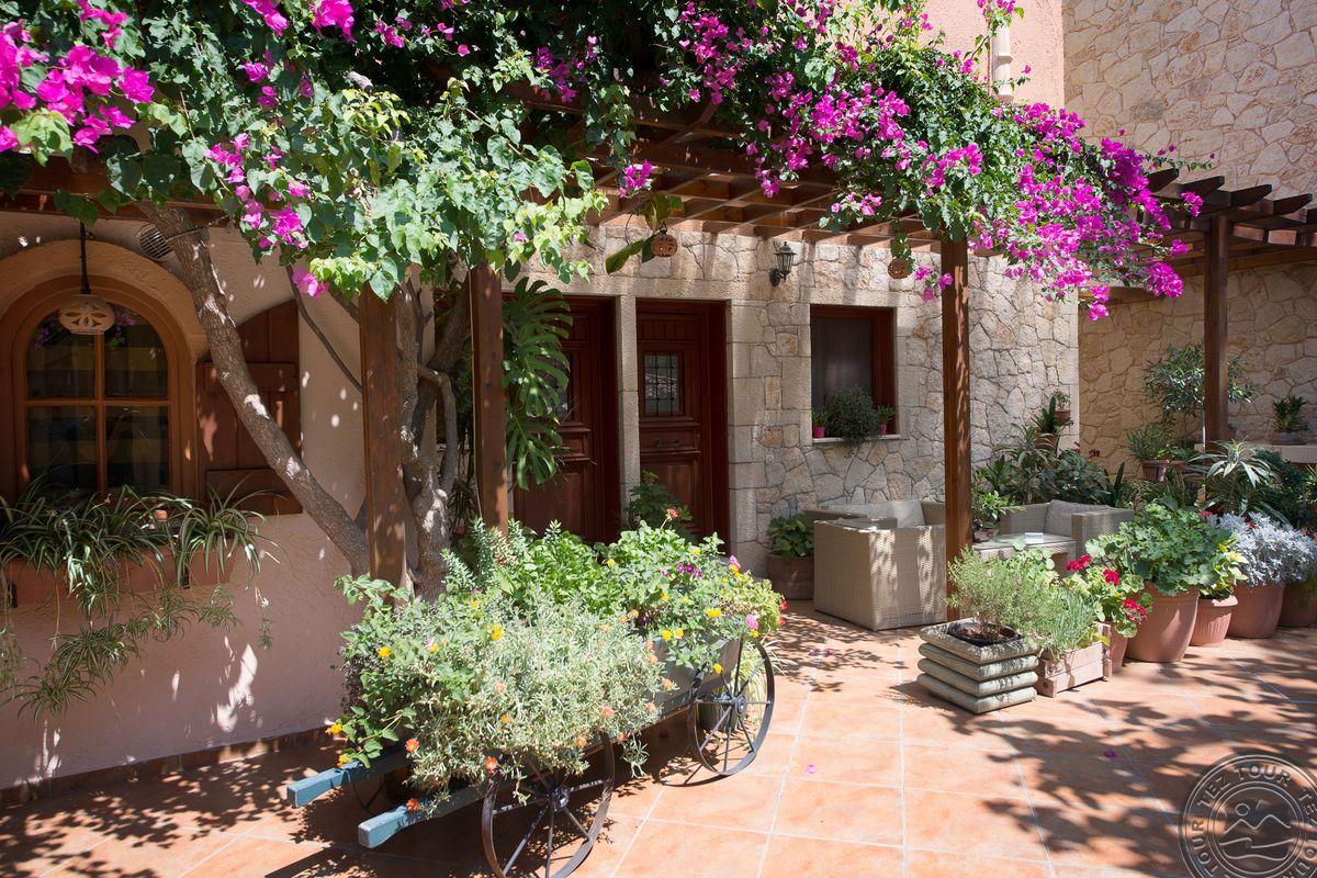 Viešbutis įrengtas tradiciniu kretietišku stiliumi.