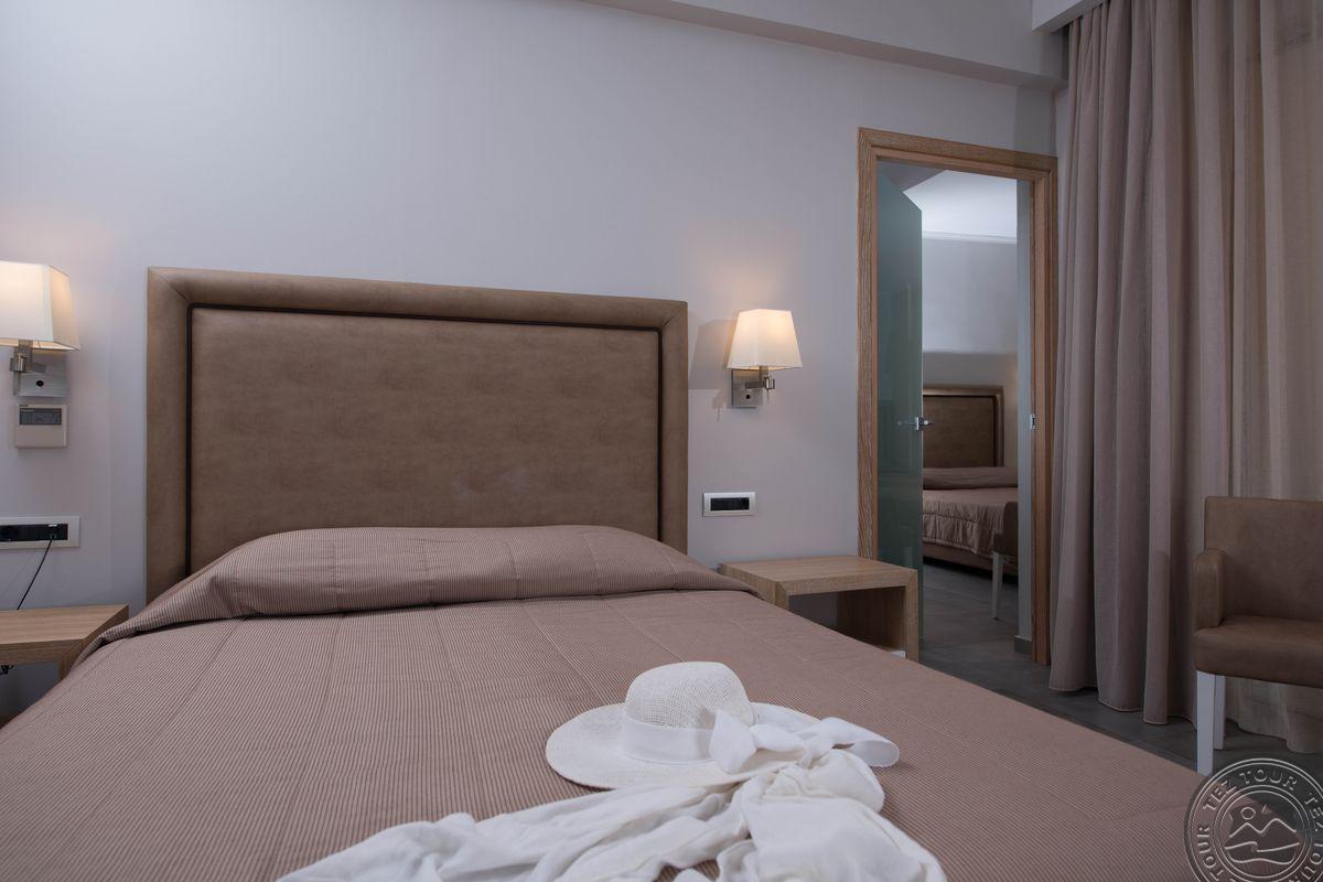 Viskas praėjo puikiai, likome patenkinti skrydžiu, pervežimu bei apgyvendimu. Puiki vieta, arti oro uosto, neprailgo pervežimas, viešbutis turi gražią teritoriją, yra kurorto centre, tad galima eiti pasivaikščioti. Pardavėjai neįkyrūs. Kambariai tvarkingi, patogūs, neskaitant to, kad nebuvo pilnai išvalyta (apibėgusi kriauklė, dulkės po lovomis). Maistas skanus, buvo tiek žuvies, jūros gėrybių, tiek mėsos, makaronų, daržovių, vaisių, desertų. Yra atskiras meniu vaikams, bet patiekalai neitin sveiki (gruzdinta, riebu), tad dažniau rinkomės maistą iš bendro meniu. Naudojomės graikišku a la carte restoranu paplūdimyje, maisto buvo labai daug, viskas buvo labai skanu. Pakankamai pramogų vaikams (bet baseinai šalti, nešildomi). Minusai - papildomai kainuoja seifas, rankšluoščiai(depozitas+mokestis už pakeitimą) bei gultai, skėčiai paplūdimyje. Daugiausiai svečiuojasi vokiečiai.