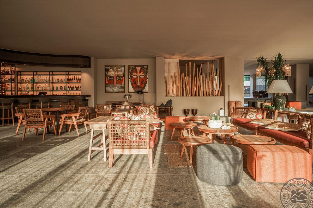 Renovuotas, 16+. Labai gražu, stilingą, daug jaunimo matosi apsistoję. Afrikietiško stiliaus. Daug detalių. Yra mokamas pavežimas iki miesto - 35 EUR į vieną pusę. Sharing pool pirmą matėm - labai stilingas, jaukus, erdvus. Standard matėm - taip pat kaip sharing pool atrodė. Viskas puikiai. Kambarių dydis tas pats (standartinio ar su bendru baseinu). 10 min iki paplūdimio. Skėčiai ir gultai kainuoja 3-10 EUR. Yra kambarių su privačiais baseinais. Turi spa.
