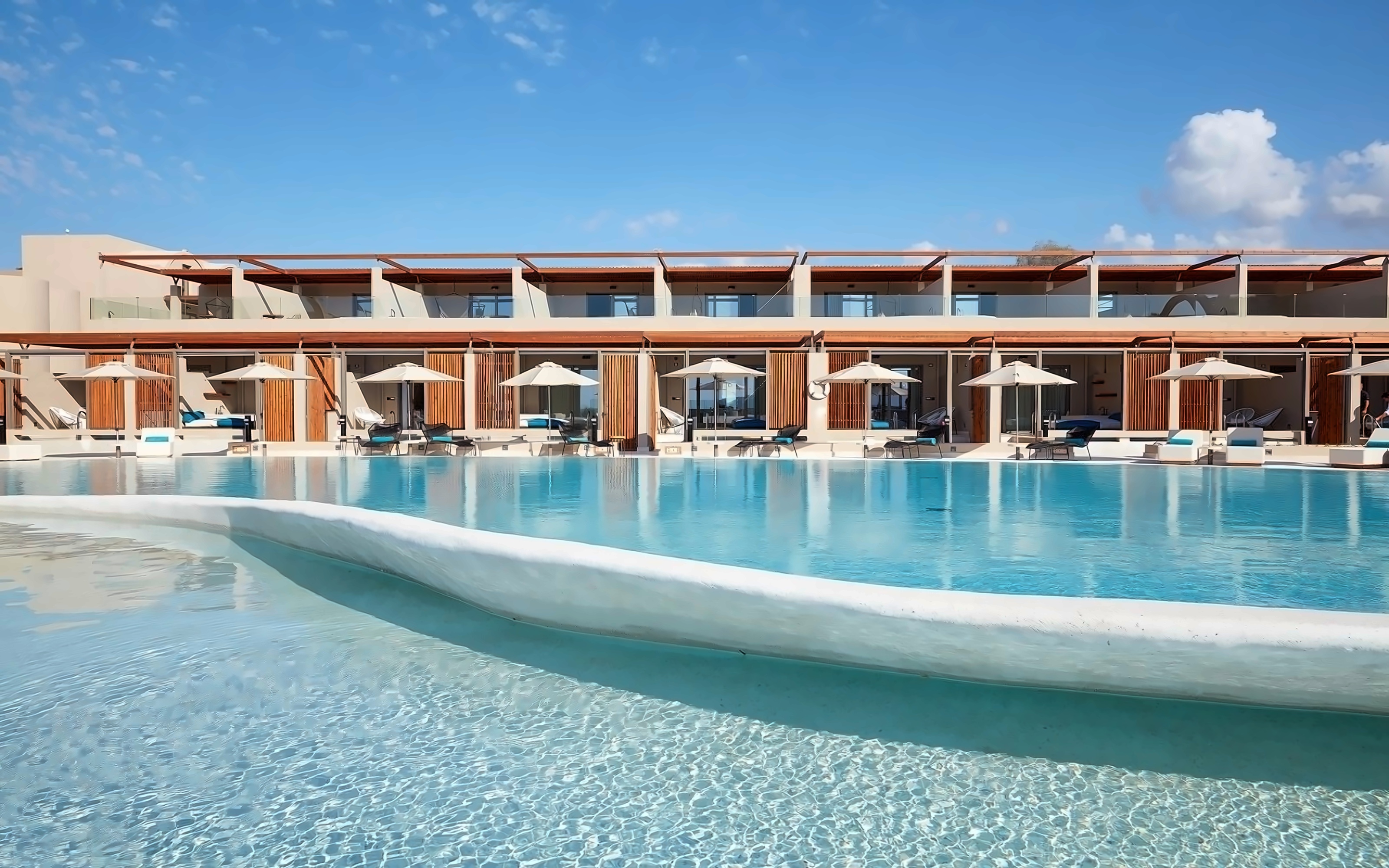 Domes Noruz Chania is located in Kato Daratso, 3.5 km from Chania. The hotel has 2 outdoor and 1 indoor pools, various bars (lobby bar, pool bar, bar Domes Beach), a conference room. It offers an animation program, a gym, water sports, various activities, as well as a Spa and beauty salon.