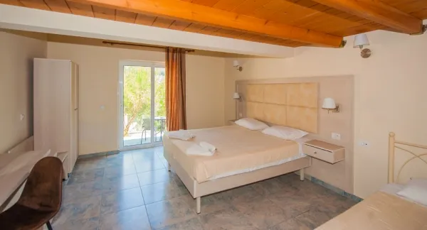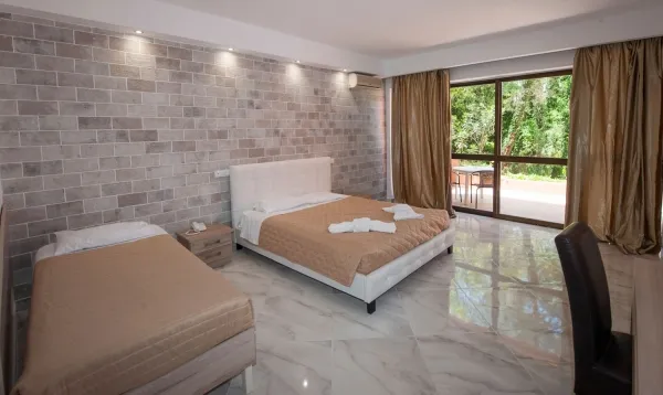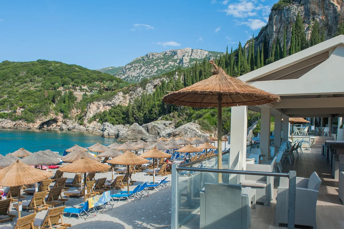 Netoli Lemaris kaimelis. Aplink kalbai, yra labai jaukių tavernų, parduotuvėlių, mažų, jautiesi tarsi viduryje kalnų, nuostabūs vaizdai. Dirba lietuvė Inga viešbučio paplūdimyje jau 7 m. Paplūdimio baras mokamas, 30- 20 proc nuolaida maistui. Labai geras šefas. Iki miestelio vairuotojai nuvaš iki autobusų stotelės ir tada iki miesto. 50 EUR taxi iki Corfu ir 2 EUR autobusu. Netoli yra labai graži vieta Palyo Kostrica - susijungia Jonijos ir Adrijos jūros. Daug vyresnio amžiaus žmonių. Maisto yra, bet paprastai viskas. 3 baseinai. Gultai 15 eur rinkinys. Rankšluosčiai 20 EUR užstatas. Iš kambario galima paprašyti, kad privestų iki family korpusų. Junior suite - 2+2 arba 3 suaugę. Labai dideli kambariai. Jei sea view vaizdas pasakiškas. Visi šeimyniniai - mesonet kambariai bus aukščiau ant kalniuko, bet turi savo baseiną ir bara. Standartiniai kambariai šalia pagrindinio pastato (už jo). Family mesonet - per du aukštus. Family standard - du sujungti kambariai. Viso 3 baseinai.