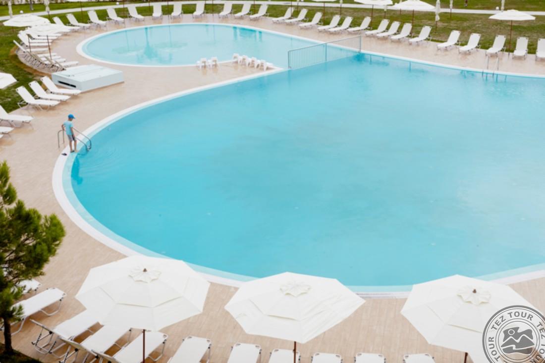 Room sharing pool tipo numeriai (pagr. lova - 2 viengulės lovos, papild. - viengulė lova, su išėjimu prie bendro baseino, maks. 3 asm., 25 m2).