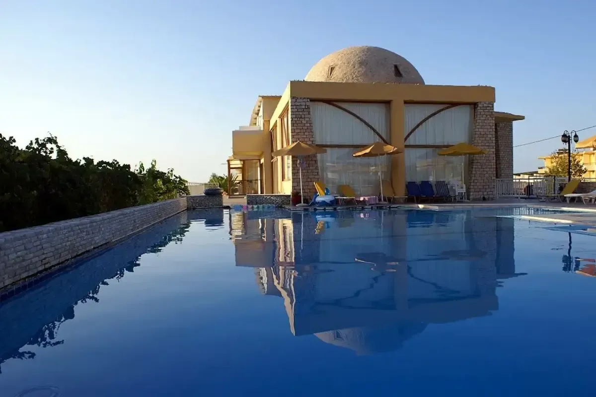 Miesto tipo viešbutis, aplink yra parduotuvėlių, barų, tavernų. Prie pat autobusų stotelė. Teritorija tvarkinga. Šis viešbutis turi tris korpusus. Kambariai išsidėstę po visus tris korpusus, rekomenduoju rinktis kambarius su vaizdu į jūrą. Gultai ir skėčiai nemokami paplūdimyje. Nevyksta animacija. 30min nuo viešbučio pėščiom labai gražus ežeras. Teniso kortai. Wifi nemokamas, bet ryšys prastas. Gultai, skėčiai nemokami paplūdimyje. Nevyksta jokia animacija. Visi kambariai standartiniai - papildoma lova normali.
