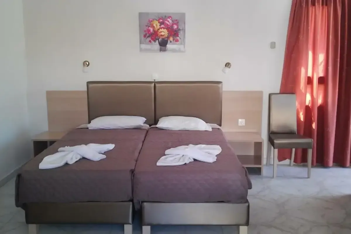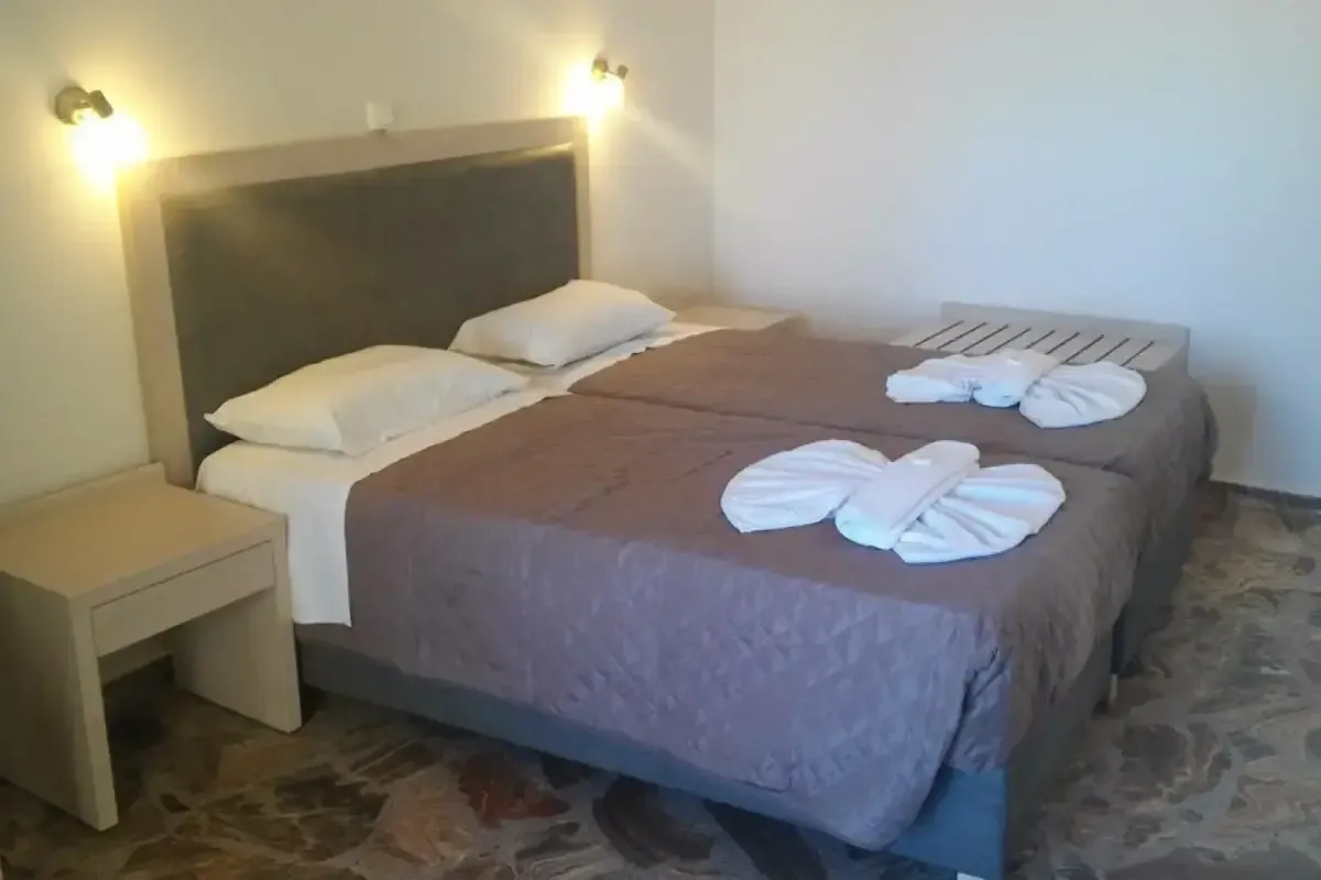 Viešbutis ant jūros kranto, pralaidus garsui, viskas, kas pigiausia; maistas lenkiško stiliaus, sulčių nėra - tik gėrimas iš sirupo, kava pigi. Bet kas nori sutaupyti ir pamatyti vakarinę Kretos pusę, gera lokacija. Galima autobusu nuvykti iki Retimno ar Chanijos, daug ekskursijų aplinkui. Šalia Kournas ežeras.