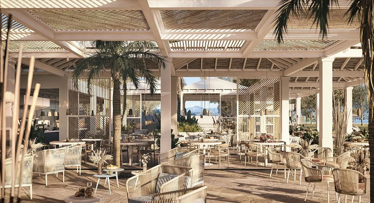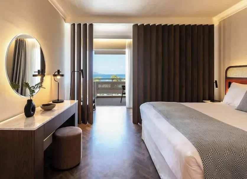 5* viešbutis ant jūros kranto siūlo modernius kambarius ir apartamentus. Viešbučio teritorijoje – du baseinai su kabanomis, vaikų baseinas, modernus SPA centras ir ramybės kupina aplinka, kurioje lengva atsipalaiduoti. Svečių laukia keturi restoranai su graikiškos, itališkos ir tarptautinės virtuvės patiekalais bei du barai. Puikus pasirinkimas poroms, šeimoms ir draugų grupėms bei ieškantiems elegantiško poilsio Korfu saloje.