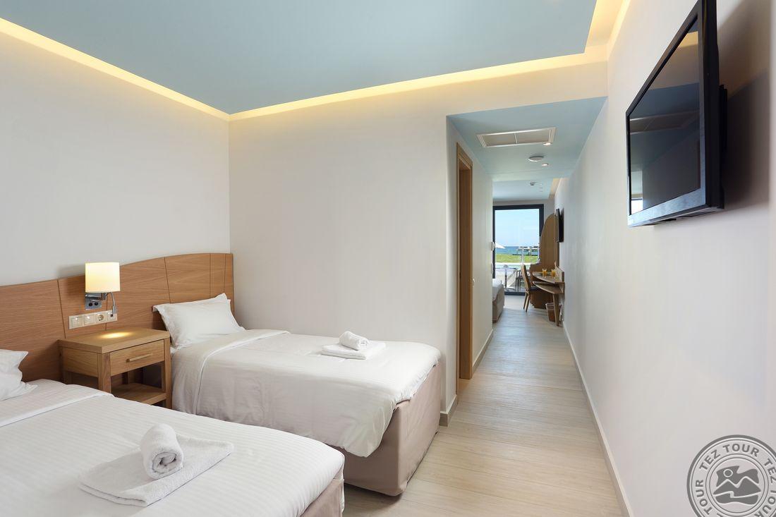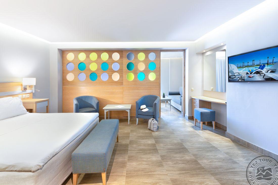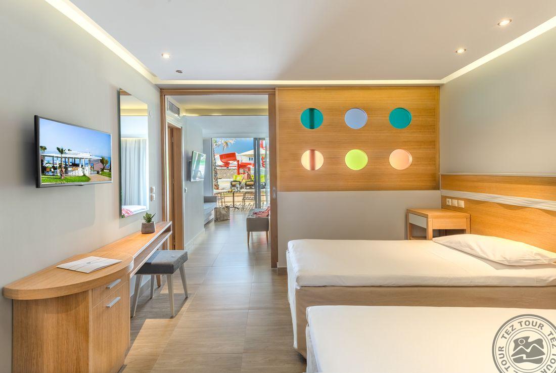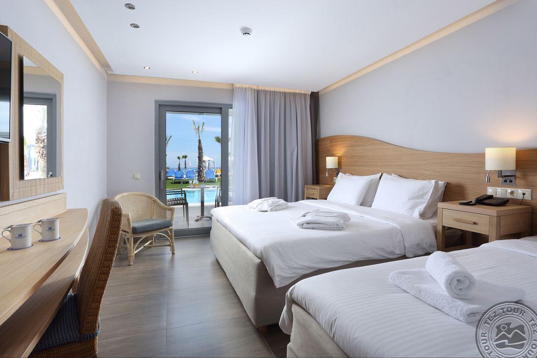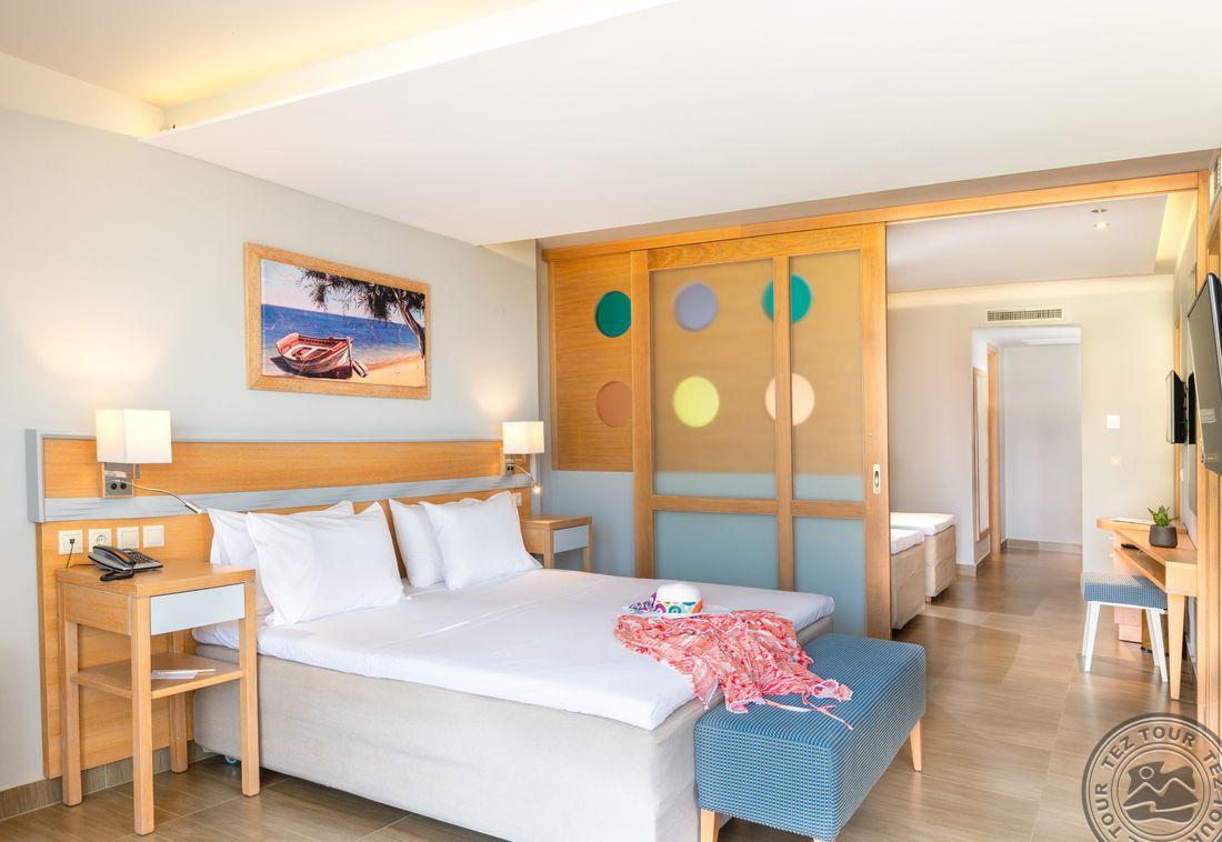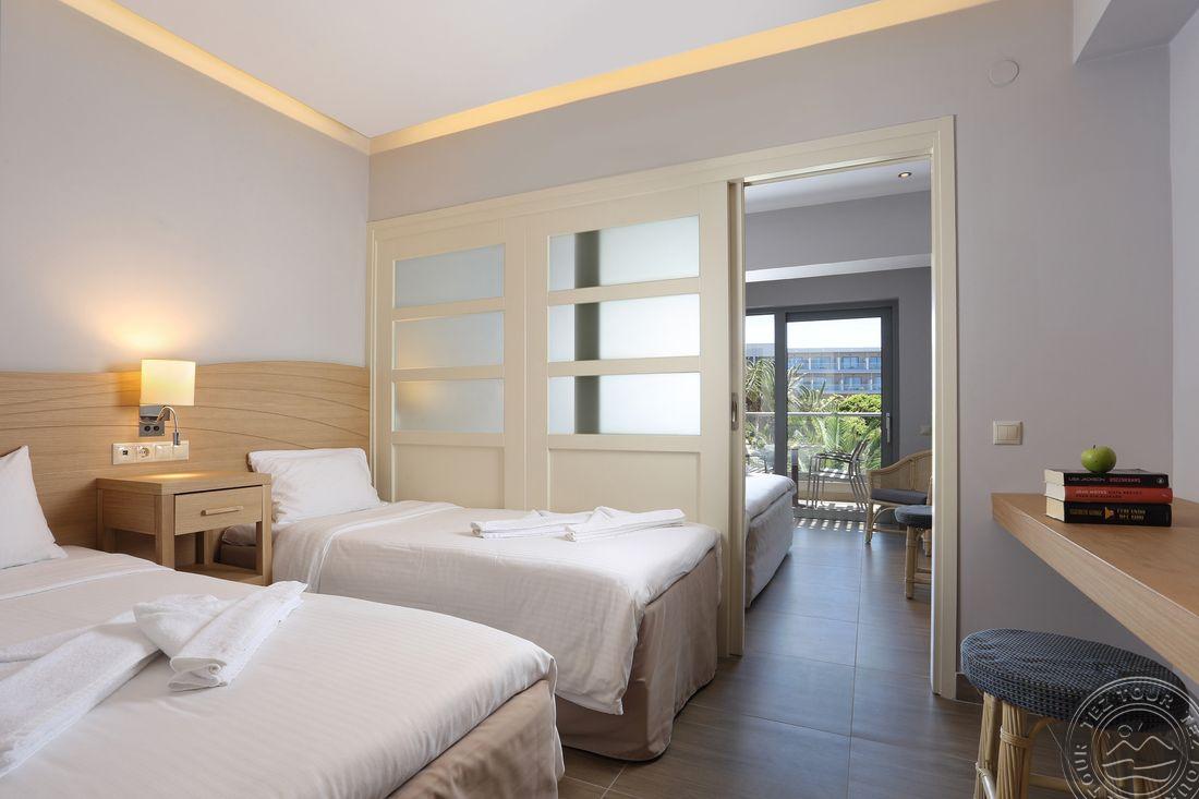 Suite Sharing Pool Sea View tipo numeriai (su vaizdu į jūrą, apatiniame aukšte, du kambariai atskirti durimis, pagr. lova – dvigulė, papildomai - 3 viengulės lovos, su išėjimu prie bendro baseino, maks. 3+2 asm, 35 m2).