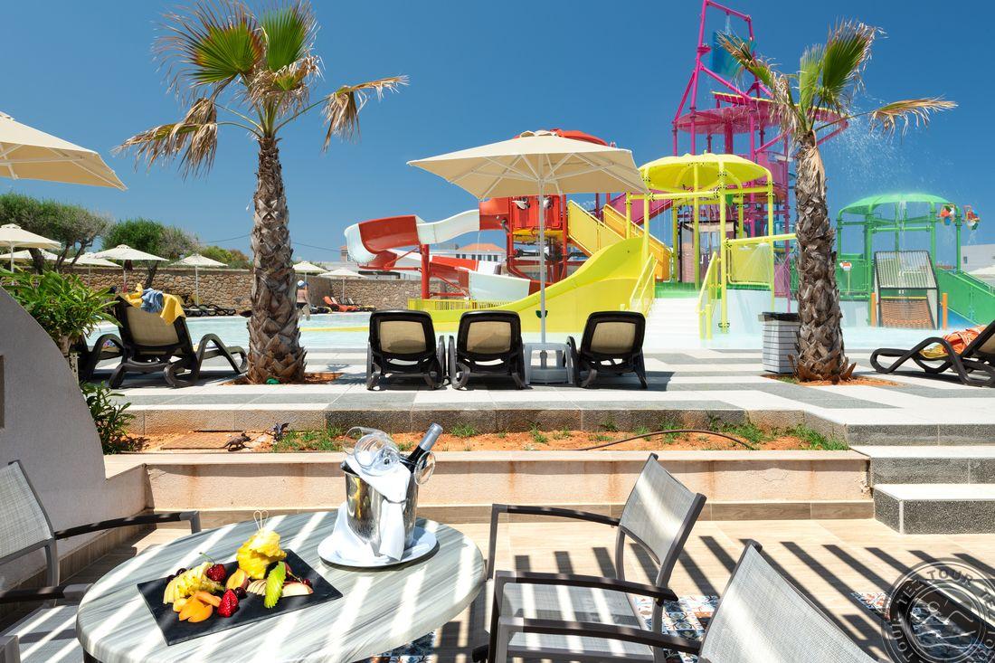 Viešbutis labai orientuotas į šeimas su vaikais. Puikus variantas kas nori didelės teritorijos Kretoje ir geros lokacijos, ne vidury laukų, o šalia gyvenvietės. Pervežimas trunka apie 30min. Be galo daug baseinų, turi atskirą zoną su vandens parku tiek didesniems, tiek mažesniems, ten ir užkandžių baras yra. Turi olimpinius baseinus, taip pat labai didelis teniso kortų pasirinkimas (ten žaidžiamas ir Daviso teniso turnyras), tad puikiai tiks mėgstantiems ir aktyvų poilsį. Smėlio paplūdimys nėra labai platus, bet ilgas. Didelis maisto pasirinkimas, kiekvieną vakarą vis skirtingos temos (meksikietiškas, graikiškas, ameriktietiškas vakaras ir pan.). Vyksta ir mini disko ir animacija suaugusiems. Kambariai erdvūs, tikrai geri. Mėgstamas vokiečių turistų.