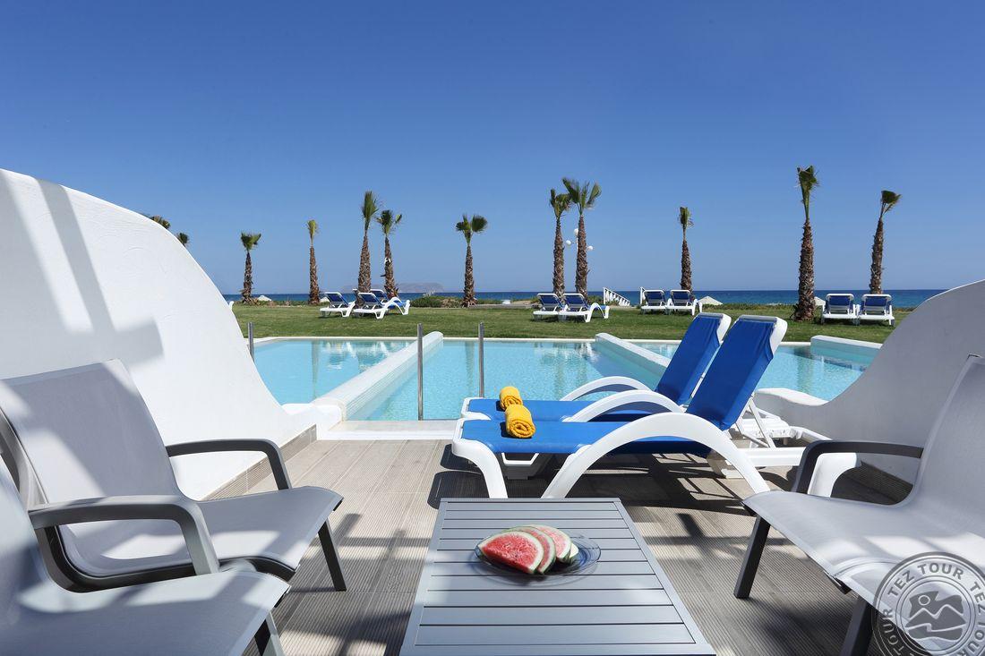 Junior Suite Sea Front Private Pool tipo numeriai (su tiesioginiu vaizdu į jūrą, apatiniame aukšte, pagr. lova – dvigulė, papildomai – - sofa, individualus baseinas, maks. 2+1 asm., 25 m2).