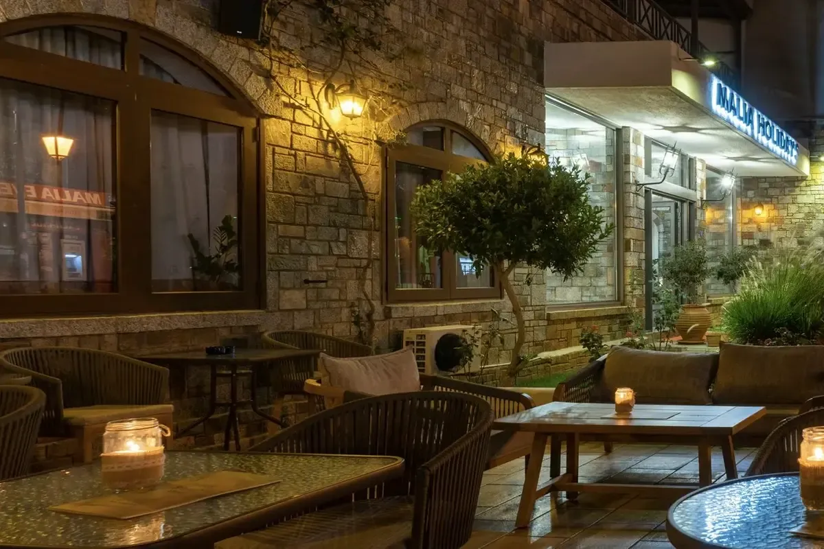 Malia Holidays – jaukus viešbutis idealiai įsikūręs netoli Malios kurorto centro, vos keli žingsniai nuo nuostabių paplūdimių. Šis miesto tipo viešbutis išsiskiria savo ramiu, šiuolaikišku dizainu ir šilta atmosfera. Svečių puikiai vertinamas už patogią lokaciją, draugišką personalą ir gerą kainos bei kokybės santykį. Viešbučio teritorijoje rasite baseiną, saulės terasą ir restoraną, kuriame siūlomi vietiniai skoniai. Rekomenduojama poroms ir individualiems keliautojams, ieškantiems jaukaus poilsio ir artumo Malios pramogoms.