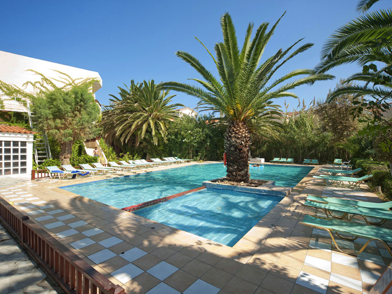 Niekam nerekomenduotume sio viesbucio! Pirmas dalykas, kuris neigiamai nustebino-driezas musu kambaryje ant lubu tiesiai virs lovos ir pilnas kambarys vabzdziu, ypac uodu. Balkono durys neuzsidarinejo normaliai, pro tarpus matyt visi gyviai is kiemo subegdavo nakciai. Nors kambarys ir buvo pakeistas, taciau jis ne kiek negeresnis, nes vaizdas buvo i gatve, todel nuolat girdedavosi triuksmas, o vakarais grodavo muzika is salia esancios tavernos. Kambarys toks tamsus kad negalima buvo suprast ar diena ar naktis! Nuolat jauciama dregme. Vonios kambarys siaubingas, remontas tikriausiai niekad nedarytas. Tualete vanduo pastoviai bego, fenas neveike, santechnika netvarkinga, vonioj galima paslyst. Karsto vandens po 18 val. isvis nebudavo, o kartais net ir iki 18 val. jo neatsirasdavo. Veliau gavome toki plauku dziovintuva, kad ji ijungus, vos nenutrenke elektra, nes uzsitrumpino ir vos nesudege. O tai matyt iprastas dalykas nes tokiu sudegusiu fenu receptione guli kruva. Lietui palijus, plyteles tapdavo slidzios, todel nelaimingas atsitikimas beveik garantuotas! Viena motetis smarkiai susizeide ranka ir koja paslydusi, o viesbucio personalas net nepasiule padeti. Be to vakarais takeliai neapsviesti, o vanduo po lietaus stovi ilga laika, balu nesimato ir labai lengva paslyst. Maistas siaubingas - per 2 savaites meniu nesikeite. Is pradziu dziaugemes bent pomidorais, taciau po keliu dienu juos patiekdavo sugedusius. O be pomidoru net nebuvo ka valgyt nes kiti patiekalai buvo neskanus. Apie patiekalus is mesos kokybe net neverta rasyti. Valgant kompanija visalaik sudarydavo katinas, kuris kartais uzlipdavo tiesiai ant kedes, matyt prates maitintis nuo stalo su sveciais. Staltieses valomos grindu sepeciu, neplaunamos, nes nuolat budavo purvinos ir apipiltos kazkuo. Matem, kaip jas tiesiog apvercia kita puse kad butu svaresnes. Langai restorane tokie purvini kad nesimato juros. Kedes nesvarios, grindys nevalomos, visur purvas ir siuksles. Papludimys visiskai netvarkomas, priejimas blogas, gultai zali , o gult net nesinori. Baras prie papludimio irgi purvinas, reikejo valyt kedes norint ant ju atsisest.. Baseinas isvis nevalomas, todel bakteriju antpludis ikisus ten bent koja garantuotas! Nuolat prikrite lapu, siuksliu, jame net niekas nesimaude, is sonu jis pasidenges pelesiais. Be to, mums, kaip nerukantiems, labai nepatiko, kad budavo pastoviai rukoma receptione ir bare. Zodziu nerekomenduojame viesbucio, gerai kad mes beveik jame nebudavom ir visalaik keliavom, grizdavom tik nakvynei. Nuotraukos aprasymuose ir internete neparodo viso vaizdo, todel neapsigaukit graziom palmem!
