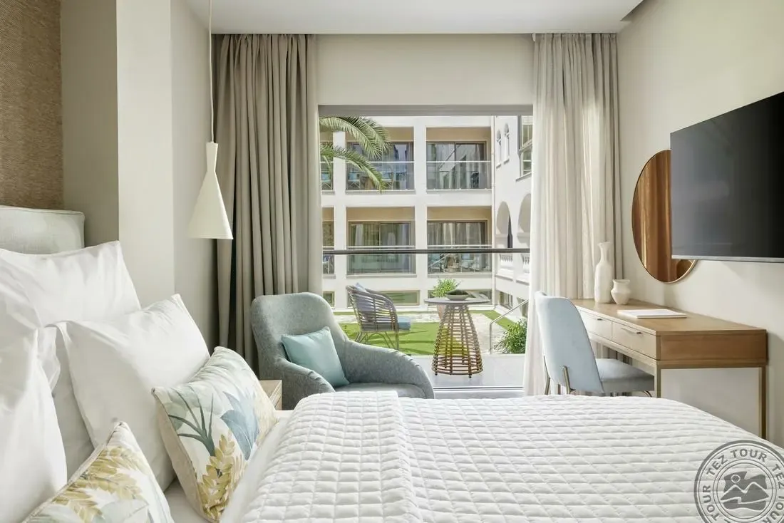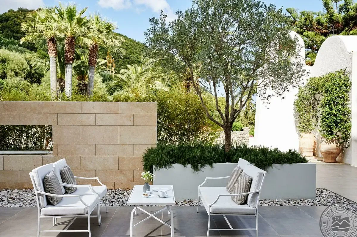 Gyvenome, patiko. Ant kalno, nusileidimas laiptais iki jūros. Stilingas, jaukus. 17 km nuo oro uosto. Moraitika 2 km. Viešbutis labai tinkamas kokybiško aptarnavimo ir gero maitinimo megejams. Turi šalia kitą viešb suaugusiems nuo 16+. Geras aptarnavimas, viską daro greitai, labai mandagiai. Pritaikytas poilsiui su vaikais, bet tinka ir poroms. Vaikų daug. Geras importinis alkoholis. Daro kokteilius iš bet kokių ingredientų. Gėrimai iki 01:00 val.Keli baseinai. Turi akvaparką prie įvažiavimo su panoraminių baseinų, jūros vandeniu. 6 restoranai, 6 barai. Galima pusryčiauti  kaip pagrindiniame restorane, taip ir A la carte restorane. 5 kart a la carte nemok, jei gyveni 7 nakv. Programėle galima užsisakyti gėrimus, vaikų pramogas. WIFI kodas 5 įrenginiams. Ekstra SPA, Kids club, auklės. Kambariai jaukūs, vonios kambarys - atviro planavimo be durų. Superior Bungalow kambariai nerenovuoti, renovuos 2024 metais. Two apartment Bungalow Suite - 2 vonios kamb, durys slankiojančios tarp dviejų kamb. Negalima gauti skirtingų tipų kambarių šalia. Deluxe Bungalow pastate gali būti šalia. Bungalow Suite Panorama View - kavos aparatas, gali gyventi iki 4 asmenų. Mini baras įskaičiuotas tik Suites kmb. Suites yra kavos aparatas. Bungalow Family Suite with Sea View iki 5 asm. 4 normalios lovos ir viena sofa, 2 atskiri nedideli kambariai. Paplūdimys pirsas, nusileidimas laipteliais, prie gultų papiltas smeliukas, be gultų yra sulankstomos kėdės deginimuisi.  Galima rasti ir smelio įbridimo į jūrą maudimuisi su vaikais. Prie pontono nuomoja vandens dviračius, kajakus, baidares 30 min nemokamai viešbučio svečiams, yra liemenės bei visą reikiama įranga.Taip pat viešbučio svečius plukdo katamaranu bei laivu. Katamaranu plaukimas į kitą viešbutį trunka ~15 min. už pap. mokestį. Plaukia vakarais 2 kartus per savaitę. Laivas nemokamas svečiams pasiplaukioti, registracija iš anksto.Išsiregistravimas iš viešbučio 11 val. Galima naudotis viešbučio paslaugomis, maitinimu. Daug britų.  Rekomenduojamas, mums patiko