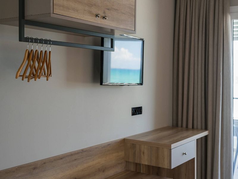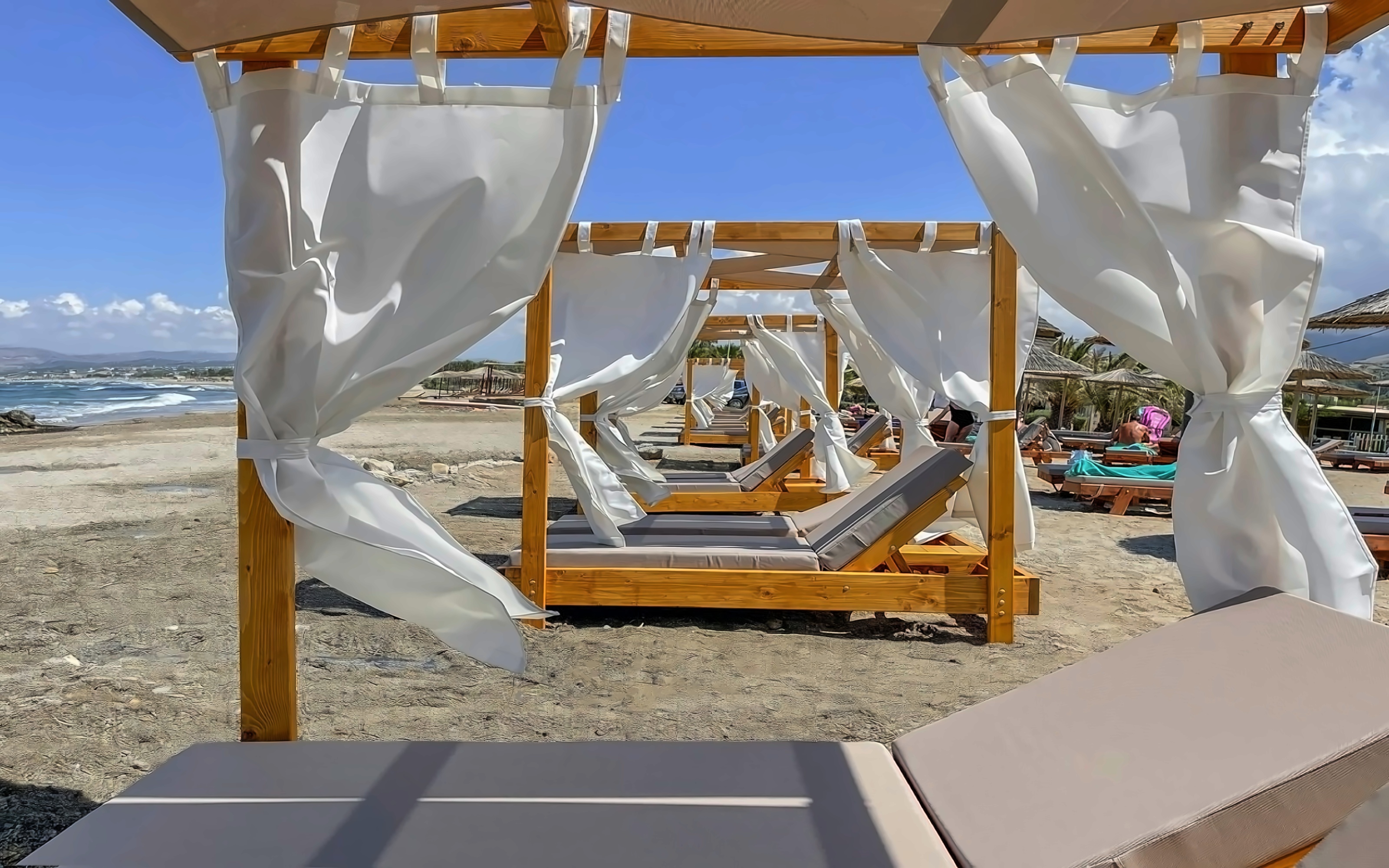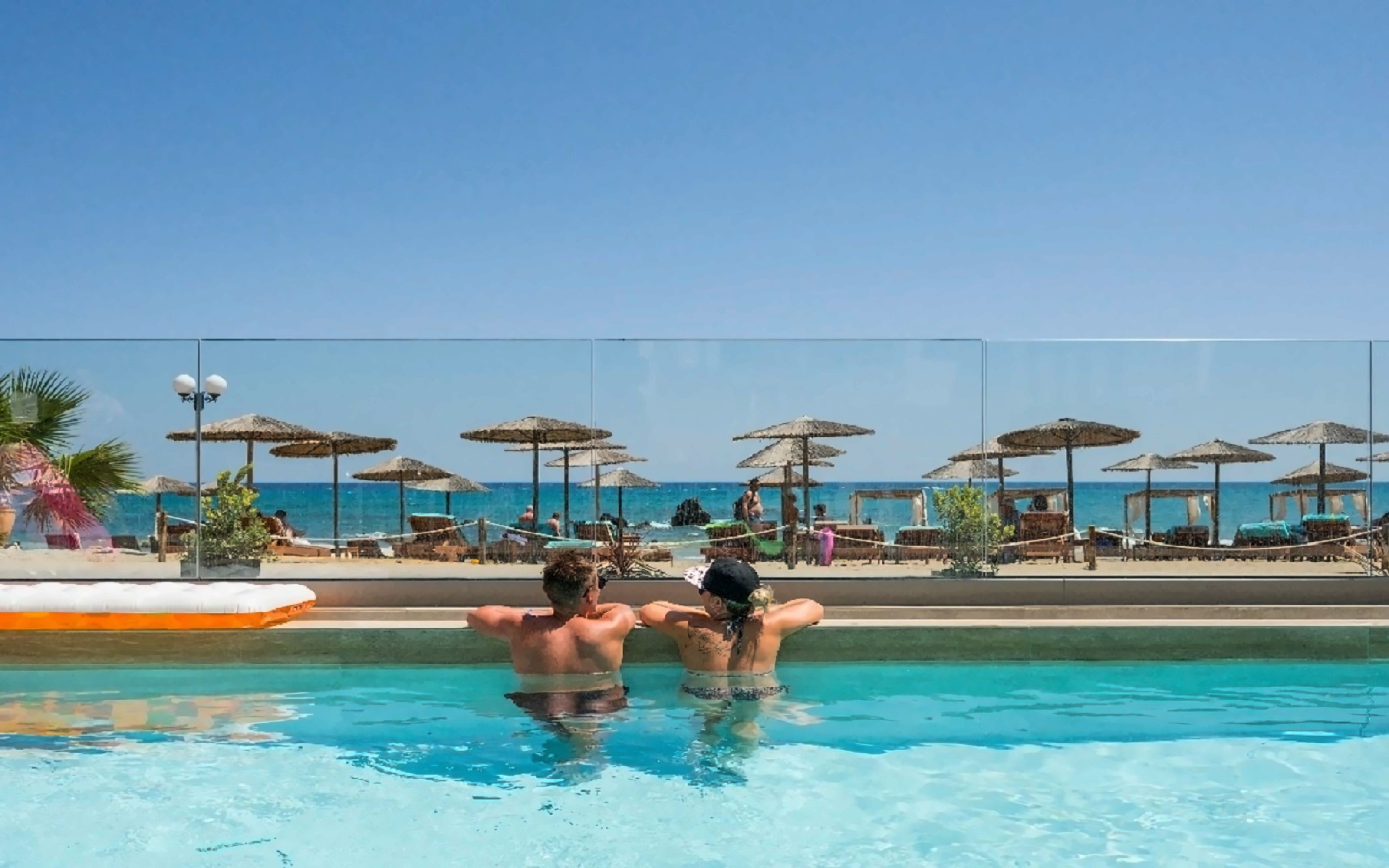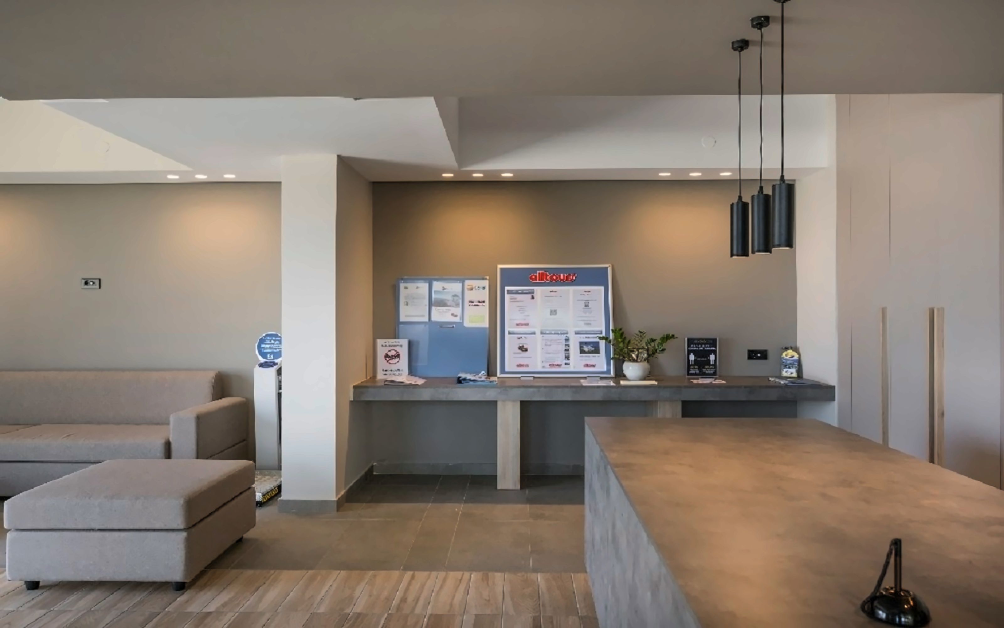 The hotel is located in the tranquil Perivolia area of ​​Rethymno, just steps from a long sandy beach and approximately two kilometers from the historic center and old town. It features an outdoor pool with a sunbathing area, a restaurant where breakfast is served, and communal areas for relaxation.