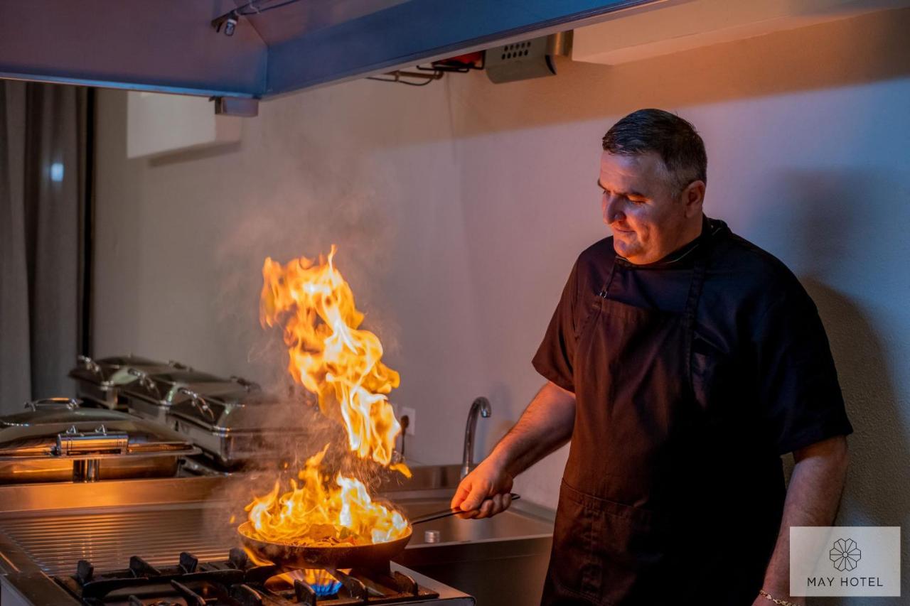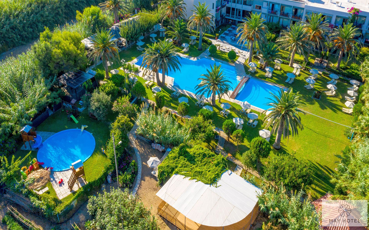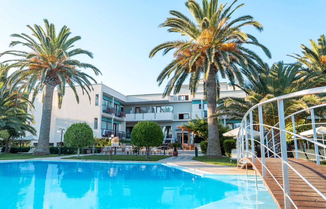 The hotel complex buildings, designed in contrasting white and red colors, are located in the village of Missiria, 500 m from the village of Platanias and 4 km from the resort of Rethymno. The hotel has a tennis court, a swimming pool and a restaurant serving Mediterranean cuisine. A sandy beach is within walking distance.