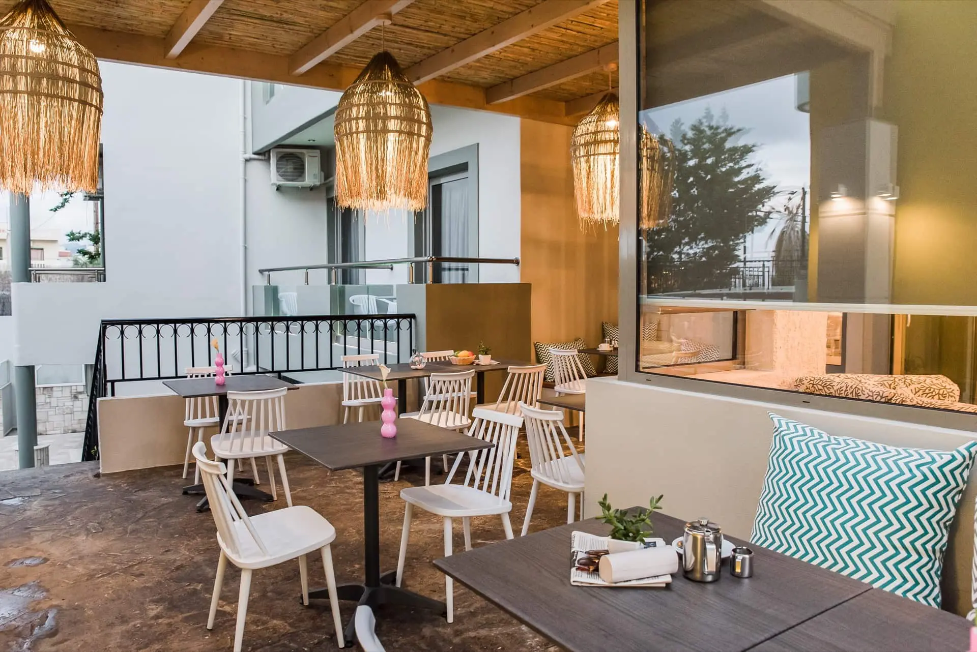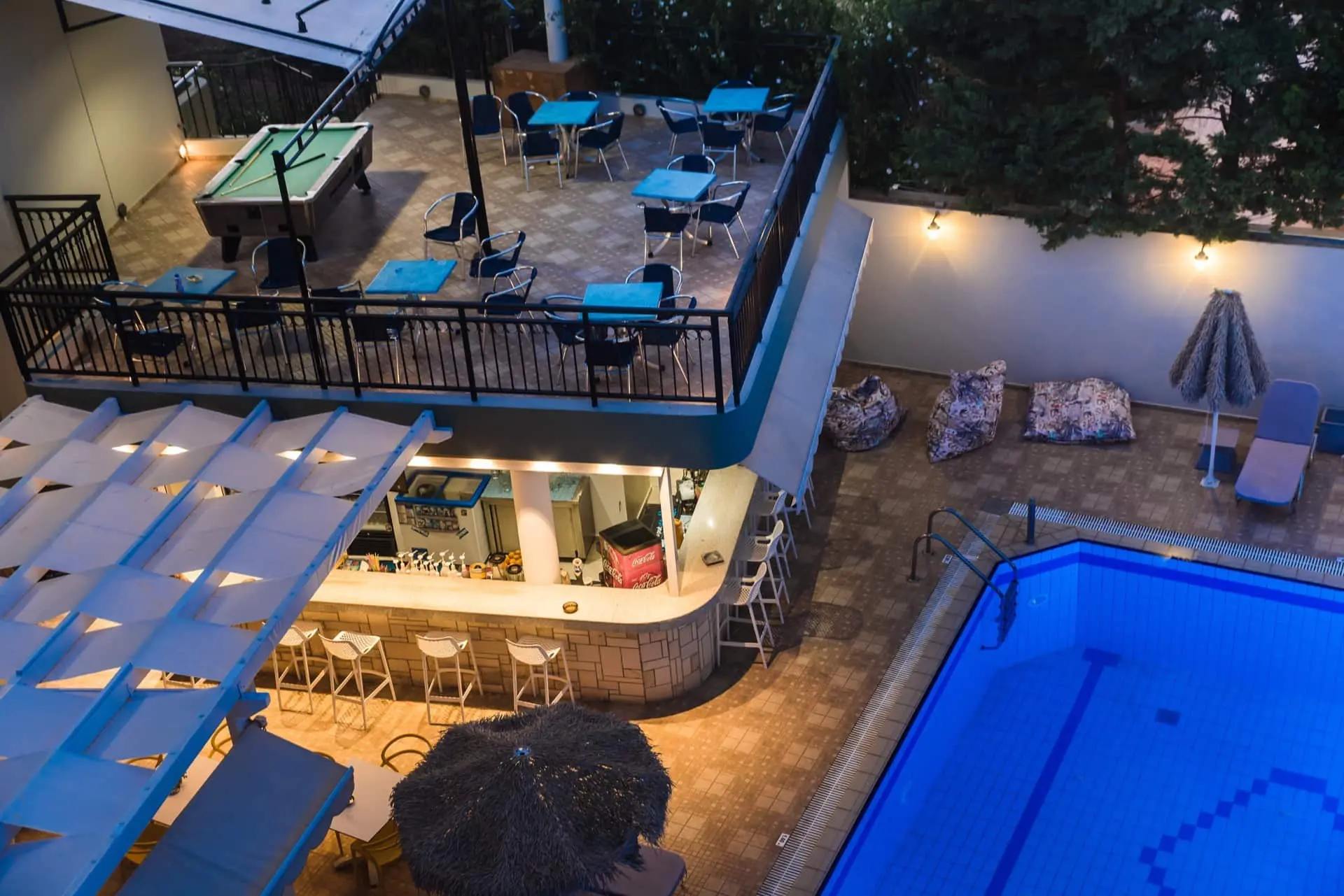 The hotel is located in the popular resort village of Malia on Crete, just minutes from the center with its bars, cafes, and entertainment. The on-site poolside bar and restaurant serves breakfast, snacks, drinks, and cocktails from early morning until sunset. Guests enjoy free parking, a 24-hour reception, daily housekeeping, and access to a nearby fitness center at a discounted rate.