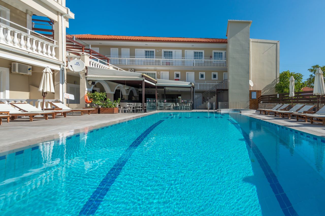 The hotel is located near the sandy beach of Laganas. For a comfortable stay, rooms are equipped with all necessary amenities, such as Wi-Fi, TV, kettle, bathroom, etc.