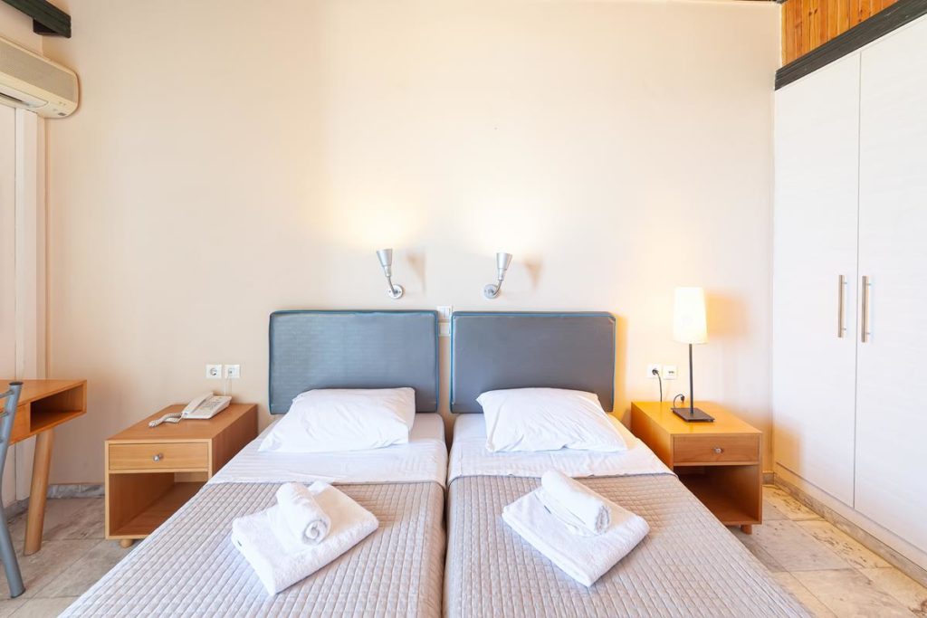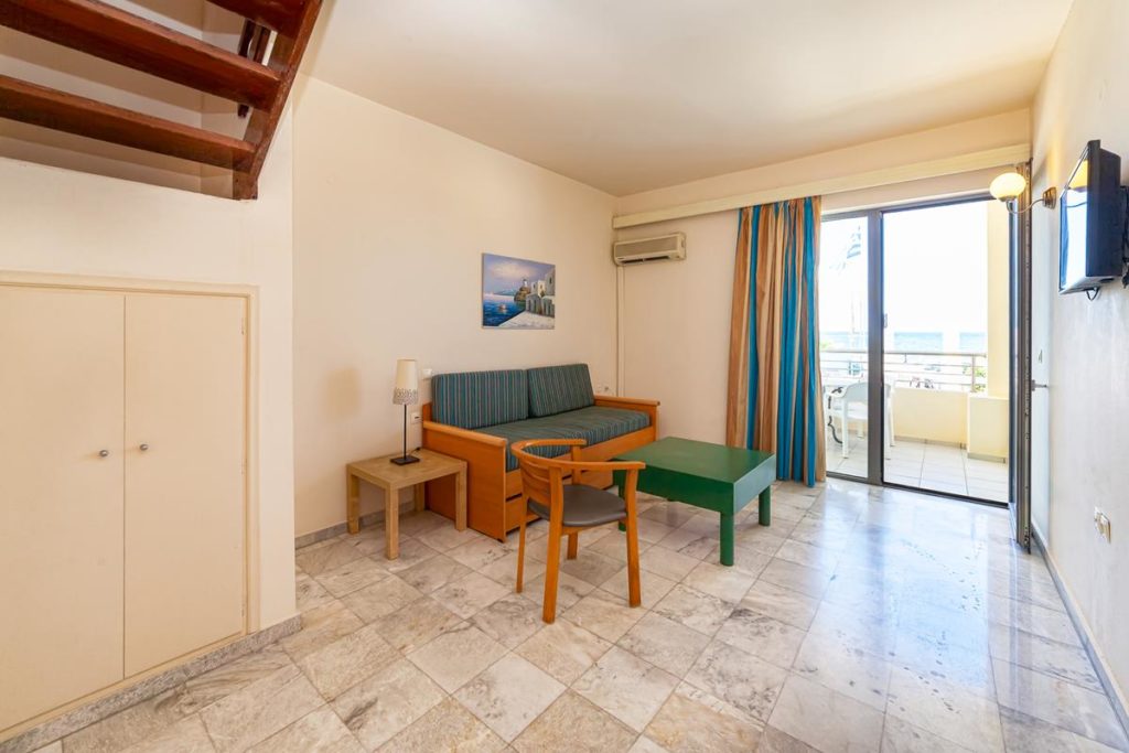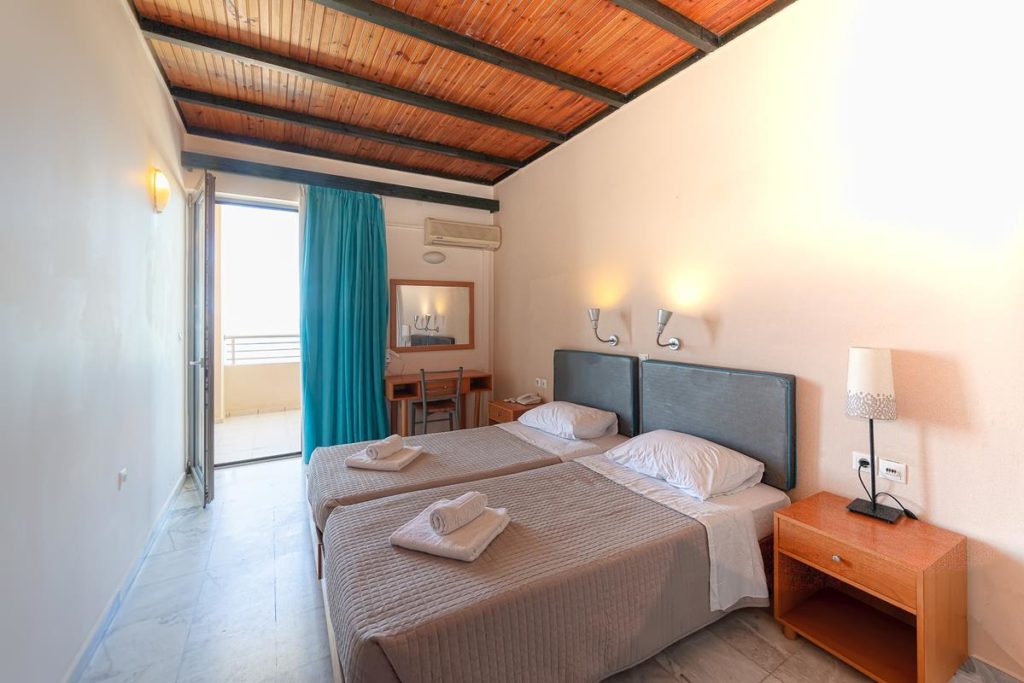 The hotel is located in a picturesque area of ​​Rethymno, across the street from the beach. It offers air-conditioned rooms with kitchenettes equipped with refrigerators and stovetops. All rooms have private furnished balconies.