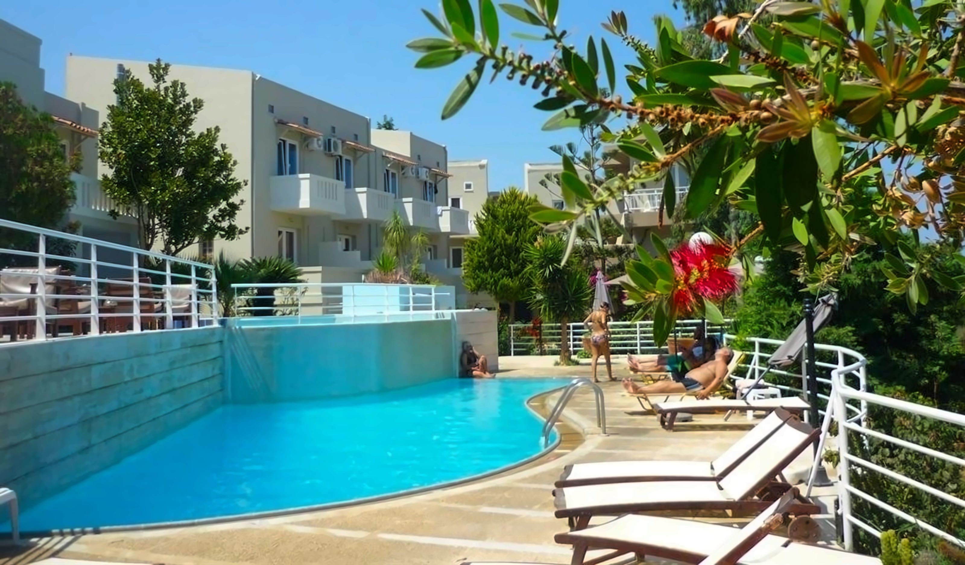 Pelagia Bay Hotel is a “village” of 5 small buildings grouped around a swimming pool and a lush Greek island garden. You are invited to enjoy the peace and quiet of this place, which is ideal for rest and relaxation.