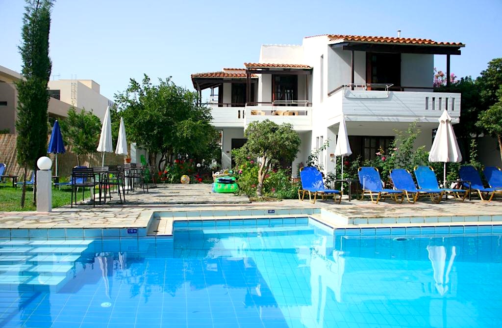 The hotel is located in the resort village of Platanias on the northwestern coast of Crete, just a few minutes' walk from the beach and the picturesque promenade with cafes, taverns and shops. The complex consists of comfortable maisonettes, decorated in light Mediterranean tones, each of which has its own kitchen or kitchenette - this makes it a convenient option for both short breaks and long stays.