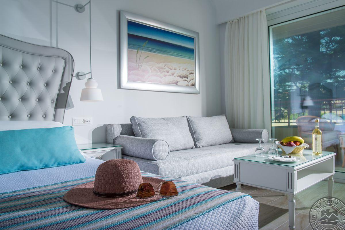 Family Suite tipo numeriai (2 miegamieji, svetainės zona, erdvus balkonas arba terasa, su vaizdu į jūrą arba baseiną, pagr. lova – 2 viengulės lovos arba dvigulė (pagal užklausimą), papildomai sofa-lova, maks. 6 asm., 50 m2).