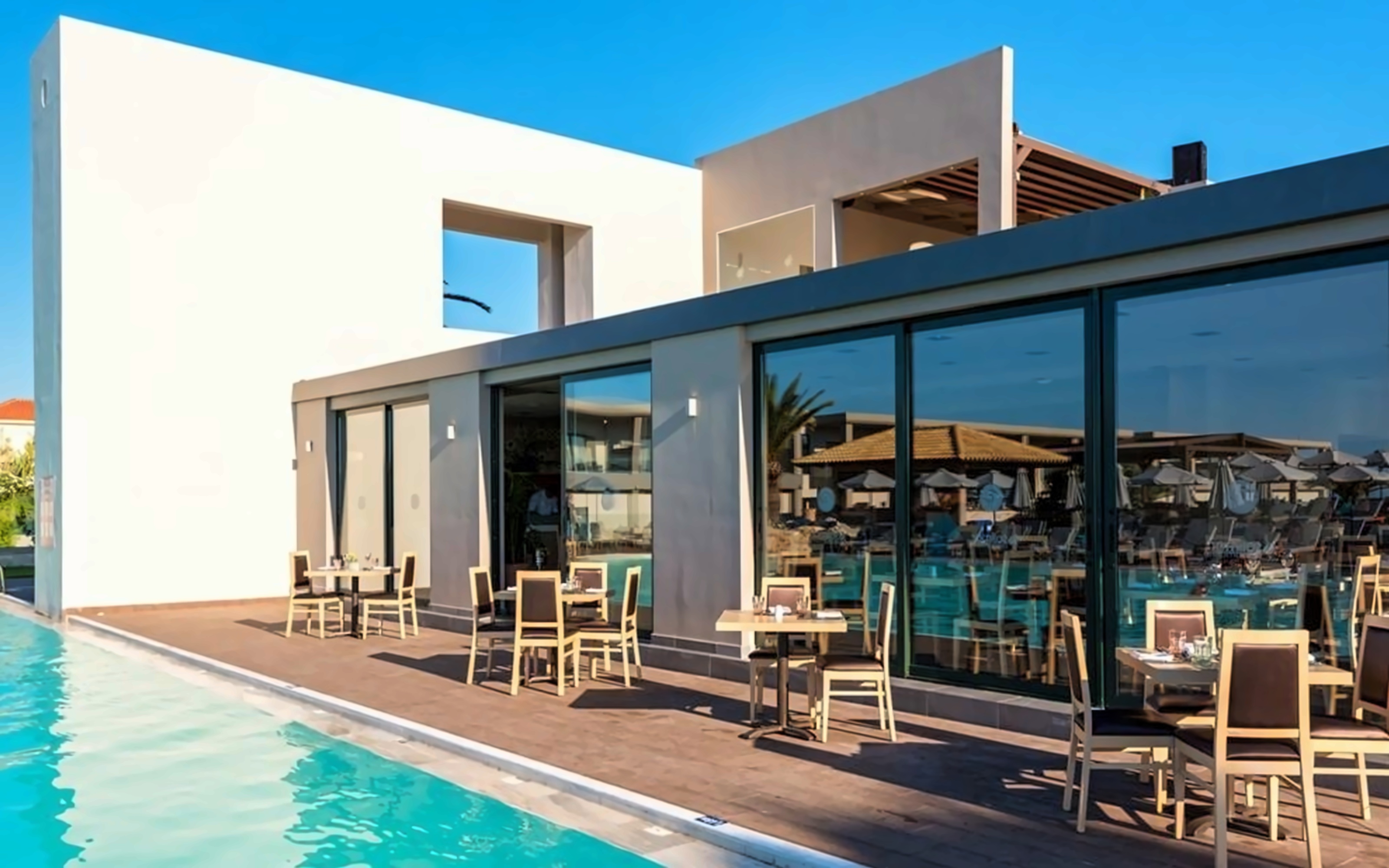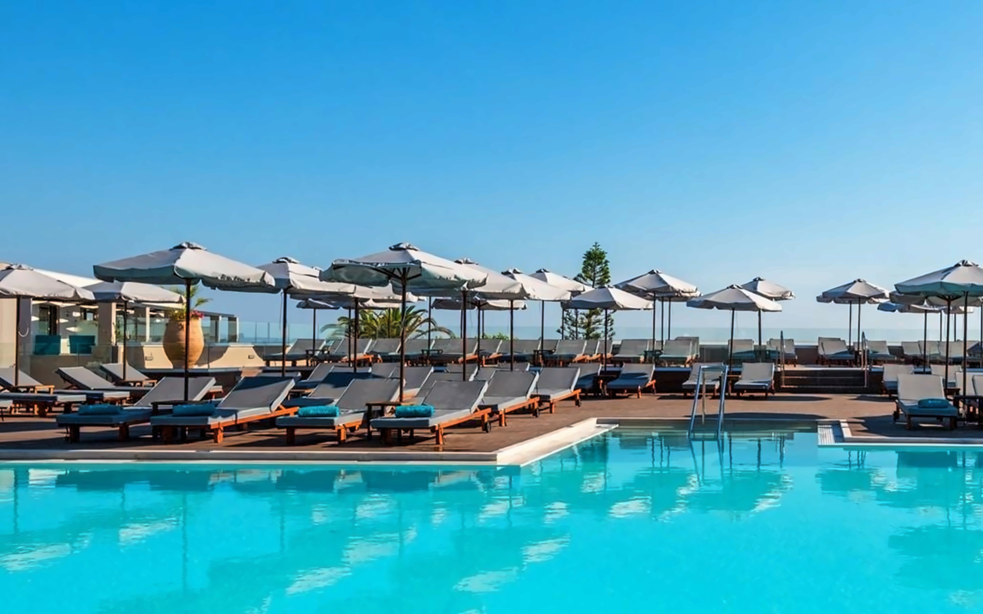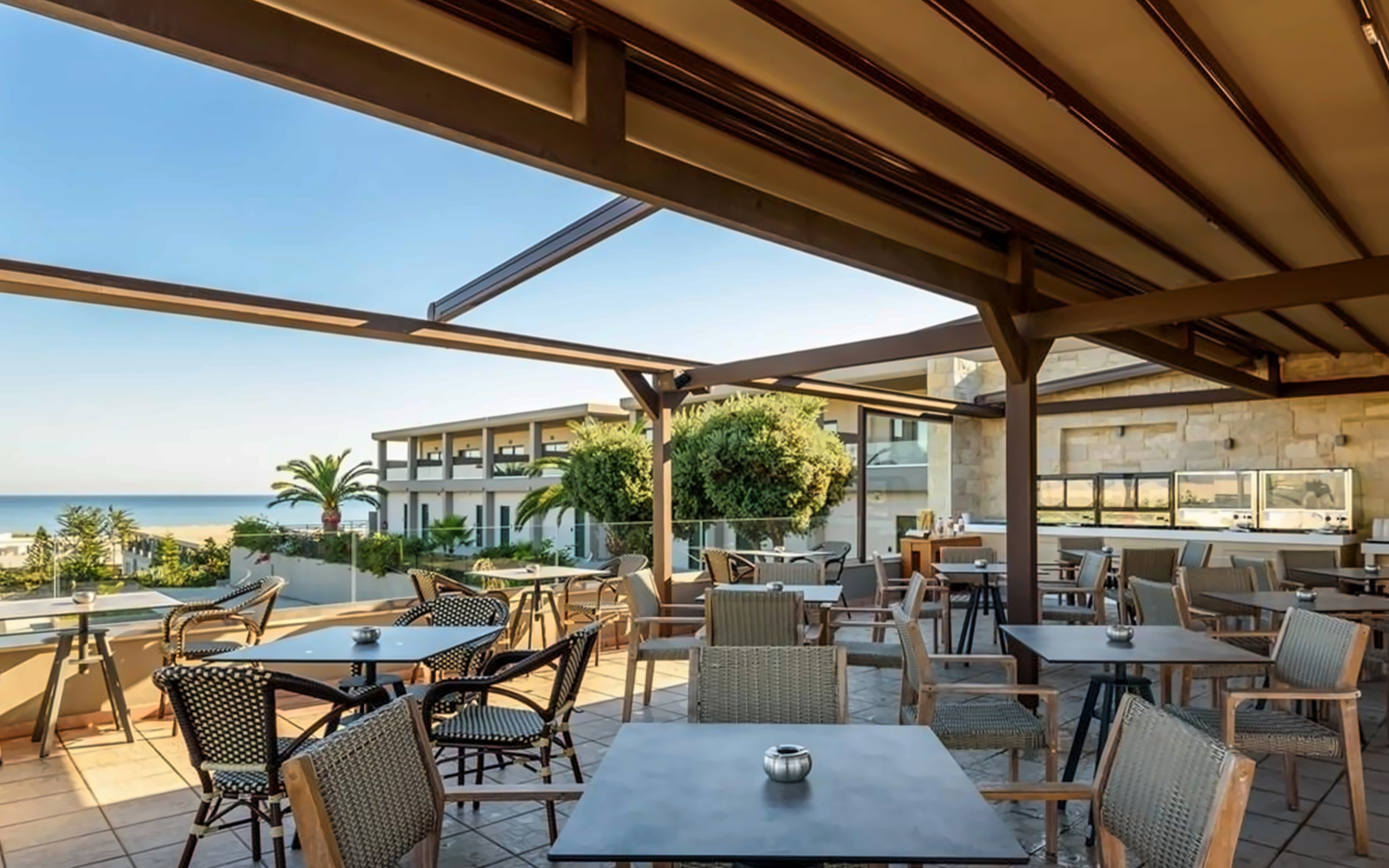 The hotel, located in the picturesque town of Rethymno-Platanias in Greece, is within walking distance from the sea. The hotel boasts a variety of amenities including several restaurants and bars, swimming pools, a wellness center, a kids' club, a gym and more. It is ideal for couples, families and solo travelers who want to spend an unforgettable holiday in Greece.