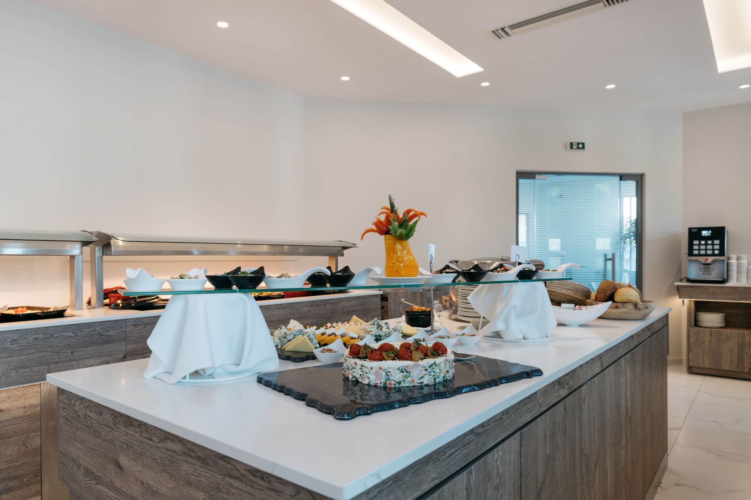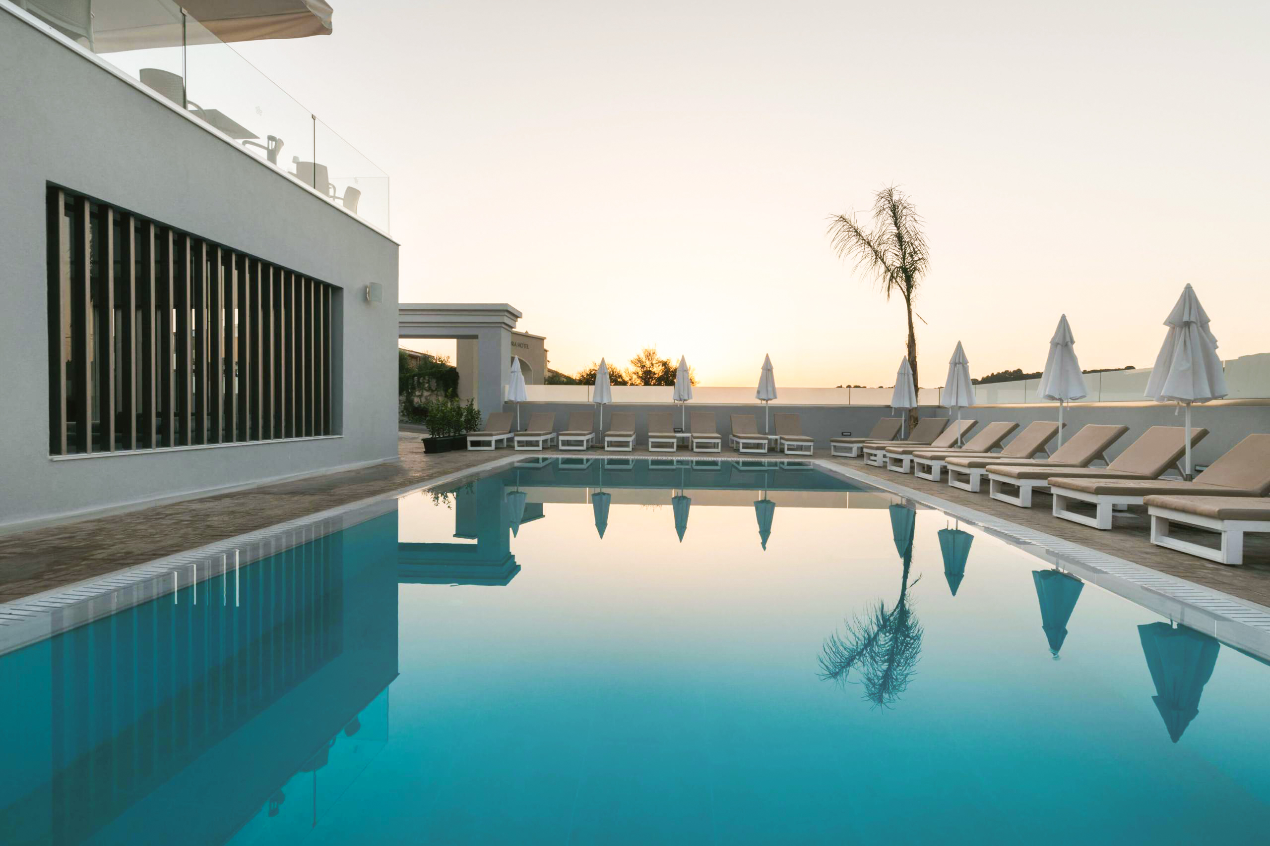 This is a family-friendly, adults-only hotel. Guests can relax by the pool, take a tour of the resort, or visit the sandy beach. The hotel has a restaurant serving Greek and international cuisine. Evening entertainment includes live music.