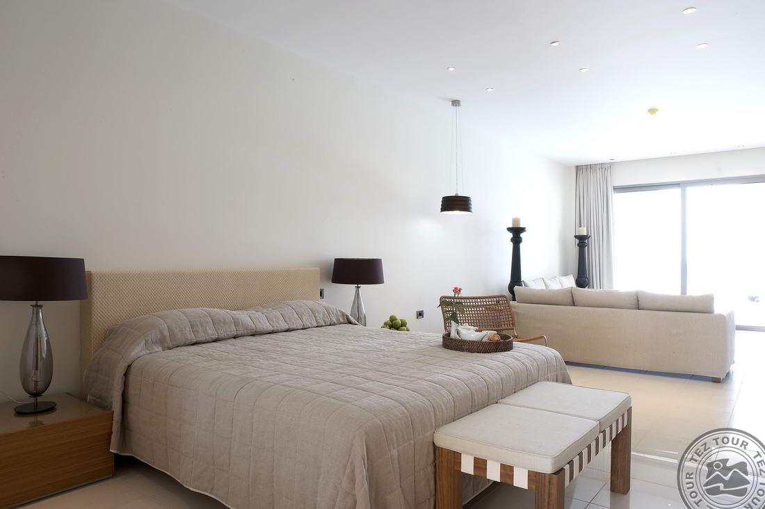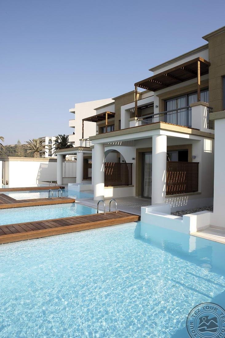 grand suite private pool tipo numeriai (1-ame aukšte, vieno kambario numeris, miegamasis su svetainės zona, pagr. lova – dvigulė, vonios kambarys su sūkurine vonia arba dušo kabina, individuali zona prie bendro baseino (nuo 21 iki 60 m2), maks. 2 asm., 46 m2);