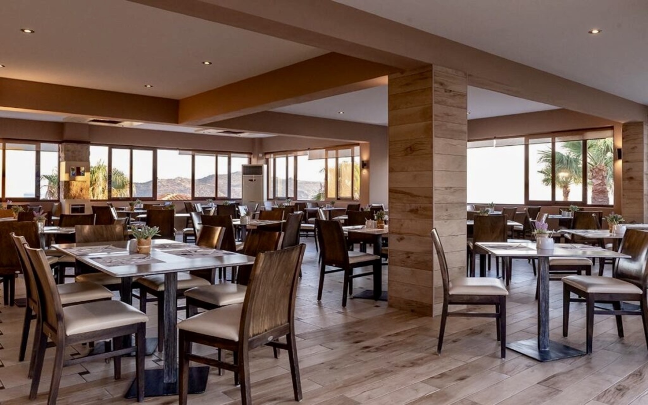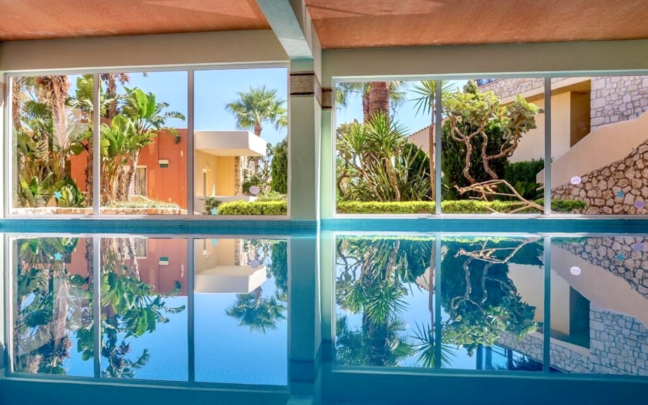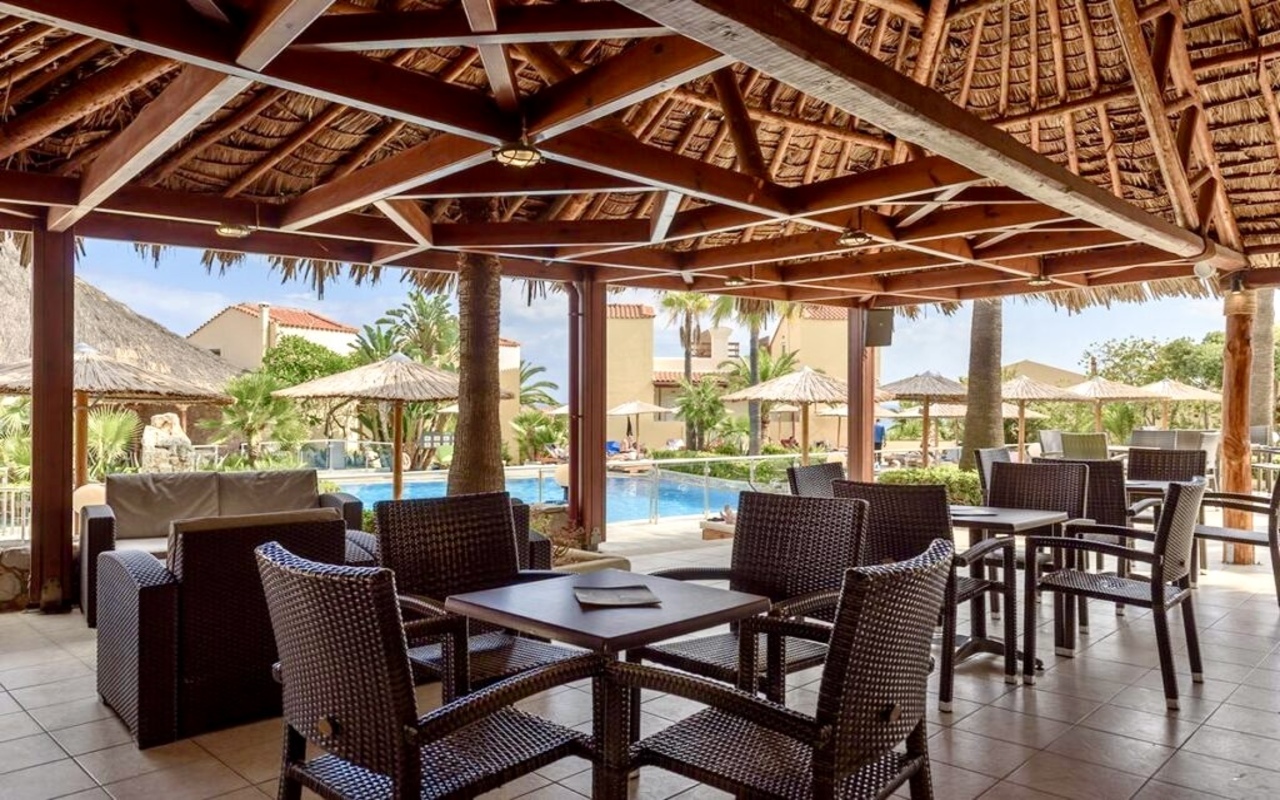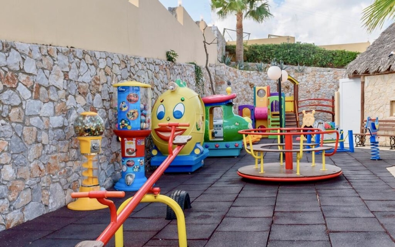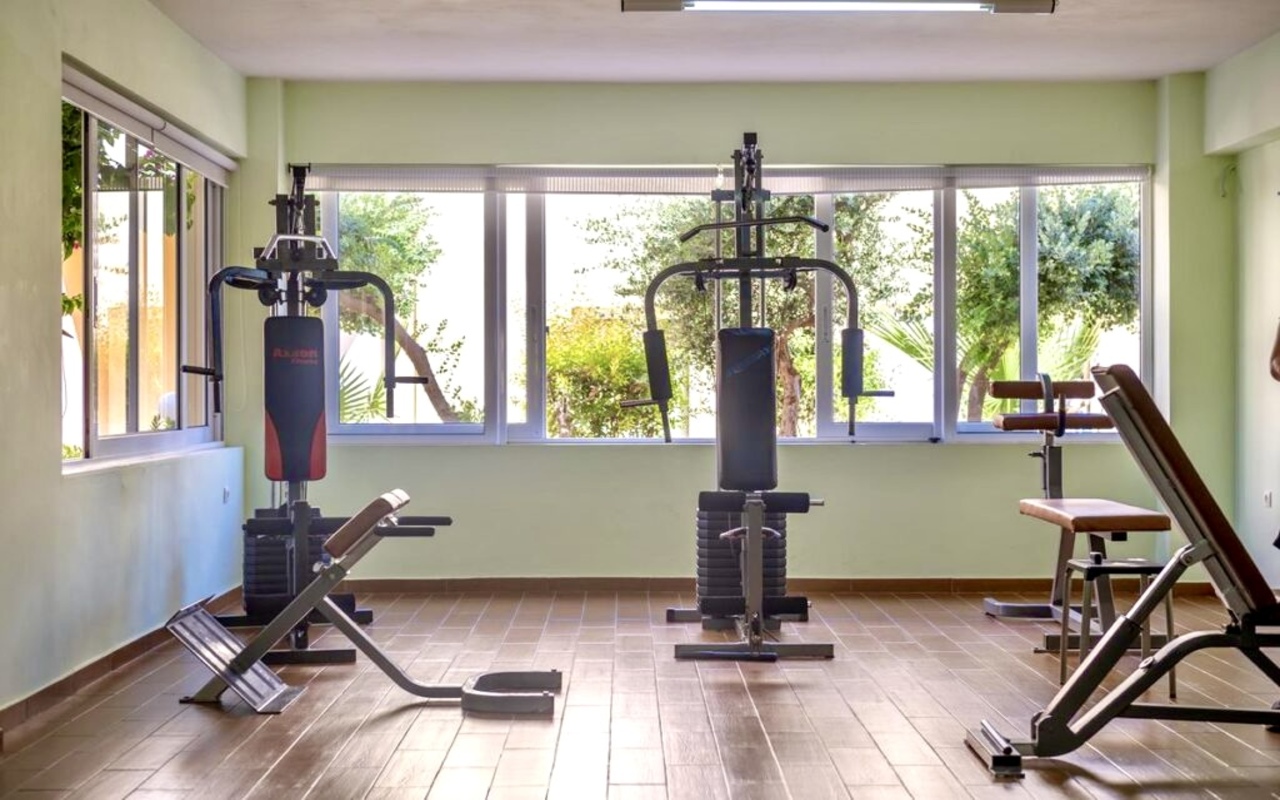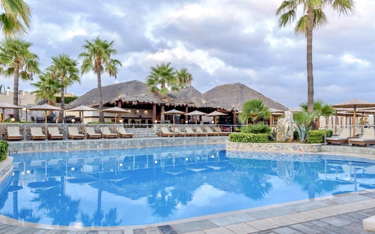 The hotel is located in the holiday village of Agia Marina. It features outdoor and indoor pools, a terrace with sun loungers, a gym, a restaurant, and bars. For children there is a swimming pool and a playground. The place is suitable for families with children, couples and travellers looking for a relaxing holiday near the sea.