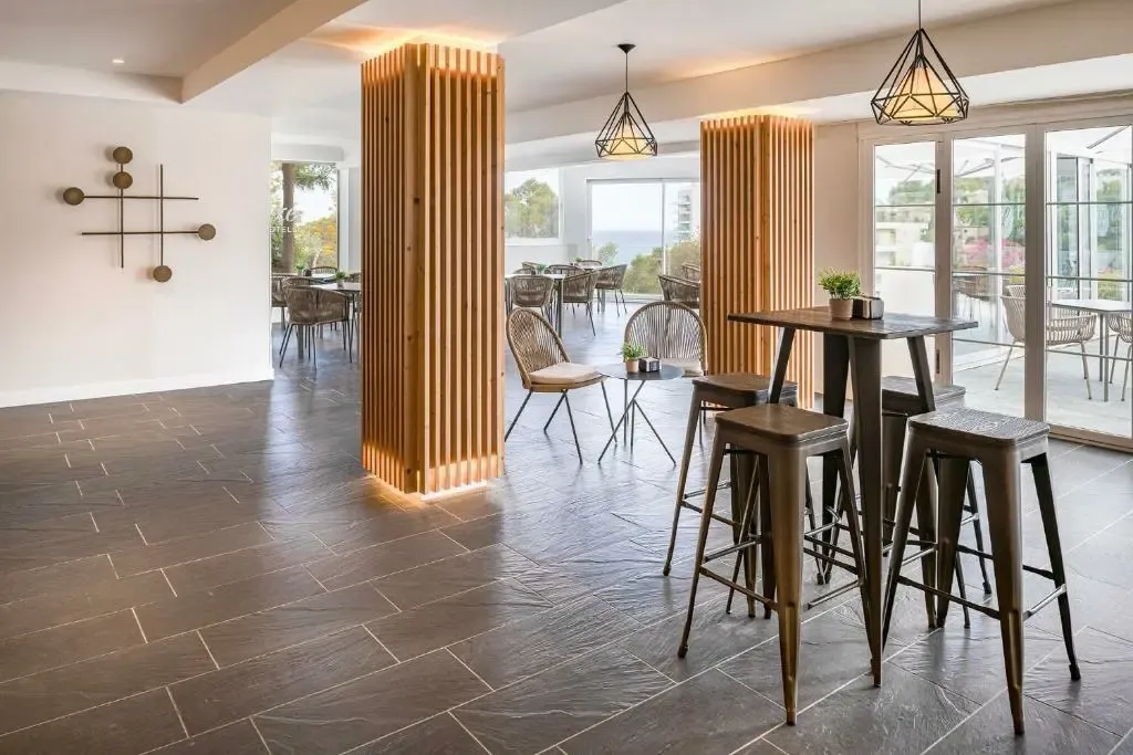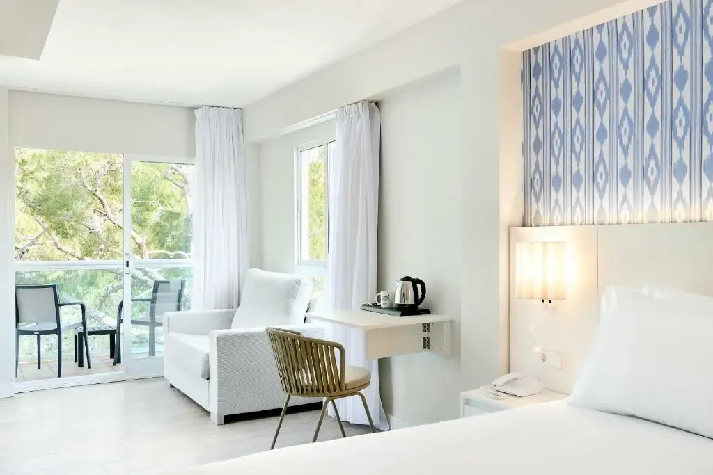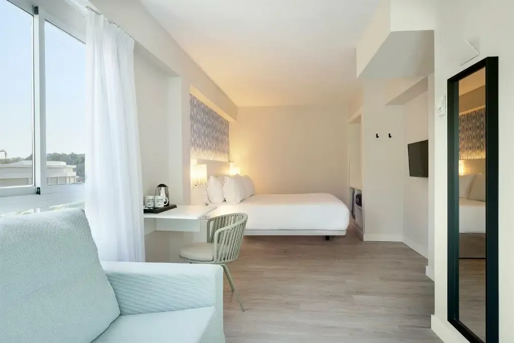„Exe Portals Nous" numeriuose yra balkonai su vaizdu į jūrą ir šiuolaikiniai patogumai, tokie kaip mini barai ir nemokamas belaidis internetas. Svečiai gali mėgautis sezoniniu lauko baseinu, sodu ir terasa. Papildomai siūlomas restoranas, baras ir kavinė.  Rekomenduojama poroms.