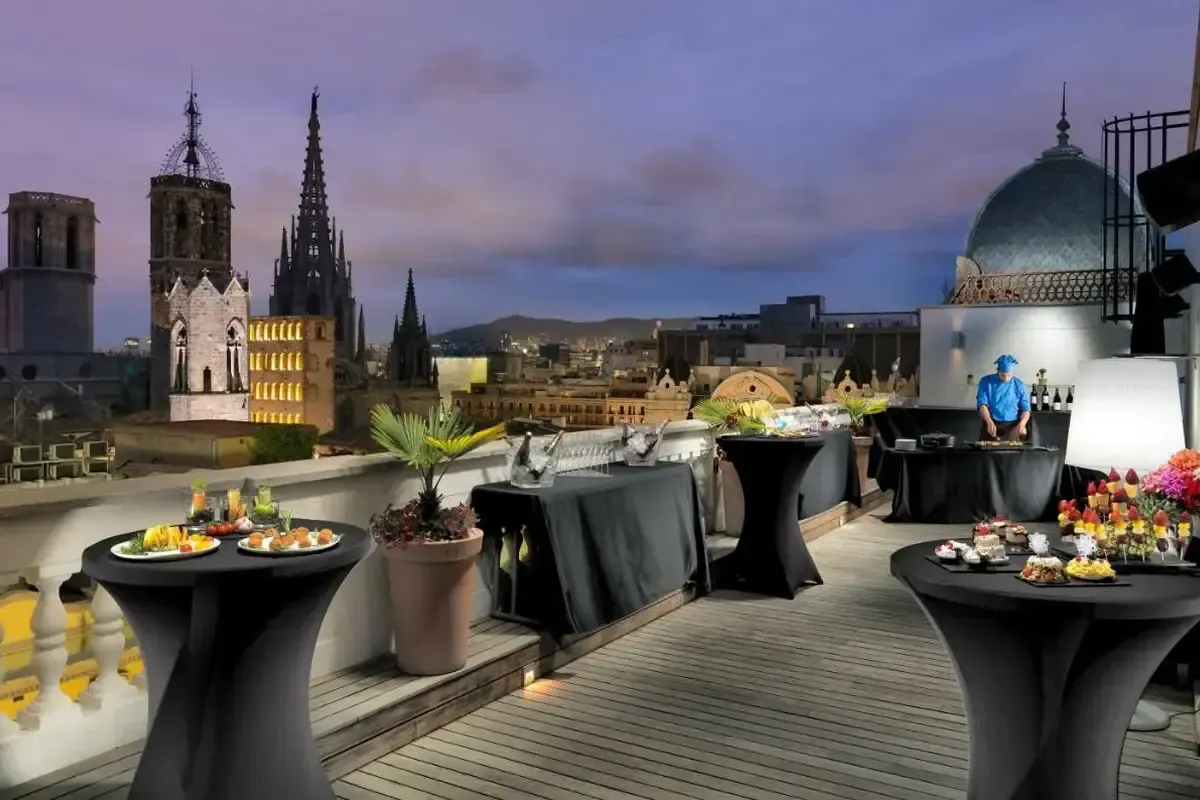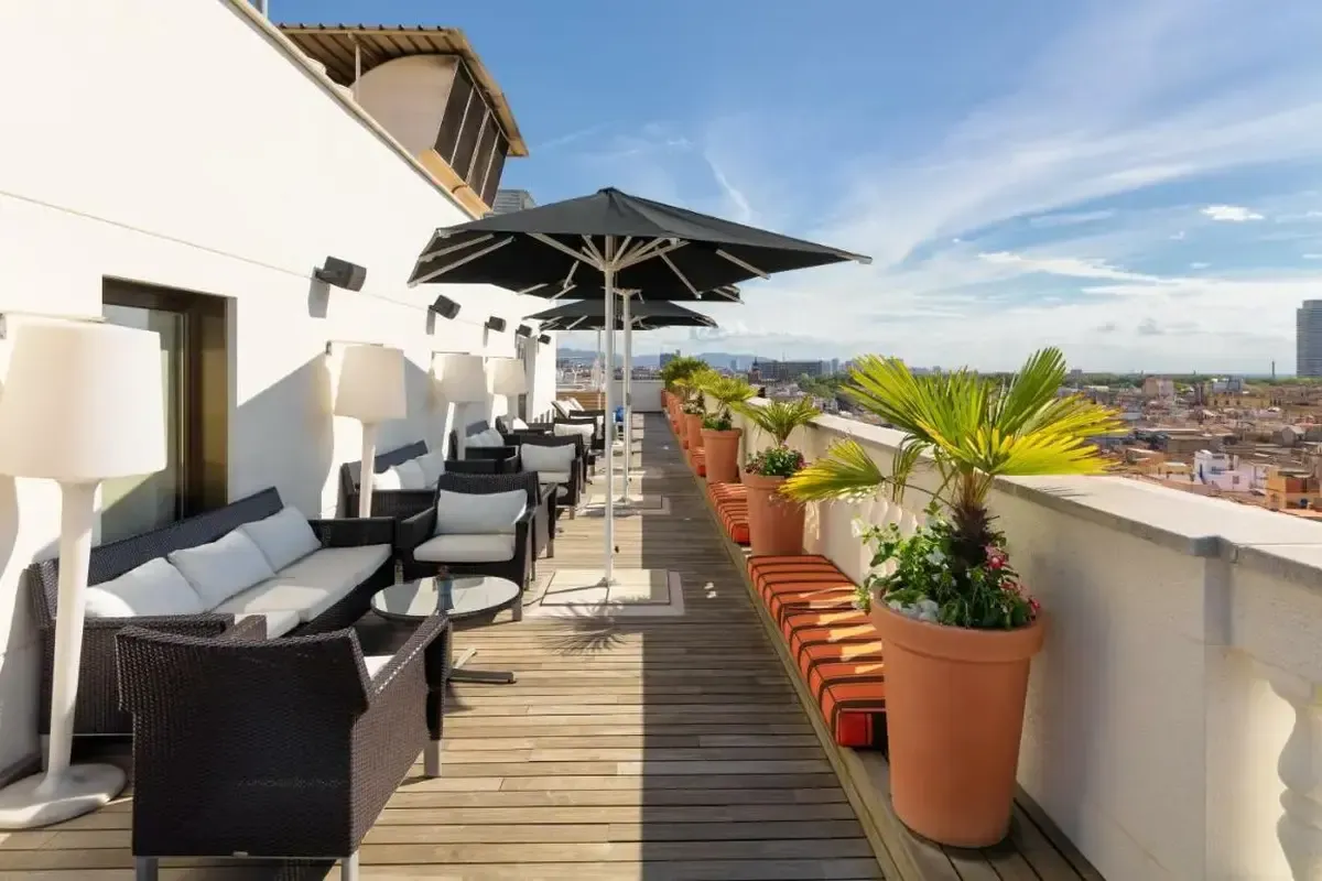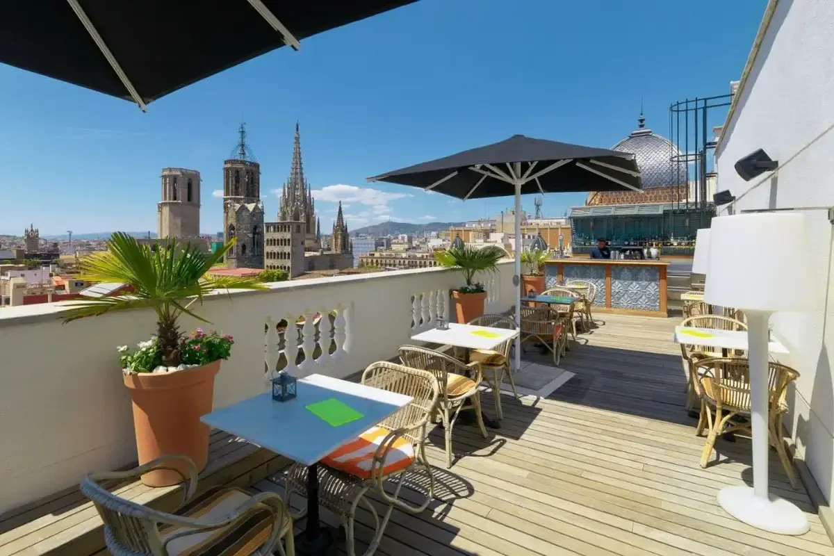 Vos keli žingsniai nuo Barselonos katedros yra „H10 Montcada Boutique Hotel“ stogo terasa. Užkąsti svečiai gali apsilankyti "The Library", kurioje patiekiami pusryčiai. Šiame prabangiajame viešbutyje yra 2 barai / poilsio kambariai, užkandžių baras / bufetas ir terasa. Iš viešbučio greitai nueisite iki viešojo transporto stotelės: Jaume I stotis yra už kelių žingsnių, o Liceu stotis yra už 7 minučių. Viešbutis rekomenduojamas porų bei šeimų poilsiui. Viešbutis turi Tripadvisor "Certificate of Excellence", "Travellers' Choice", "Booking" apdovanojimus.