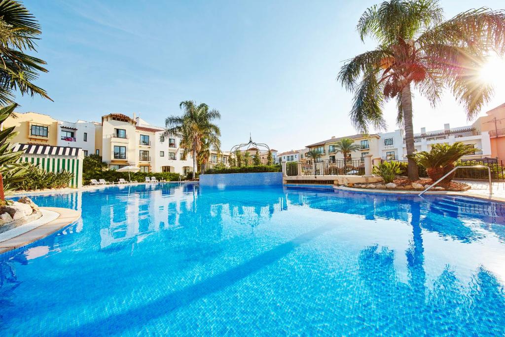 All rooms have bright décor, satellite TV, a minibar, and views of the hotel gardens or swimming pool.