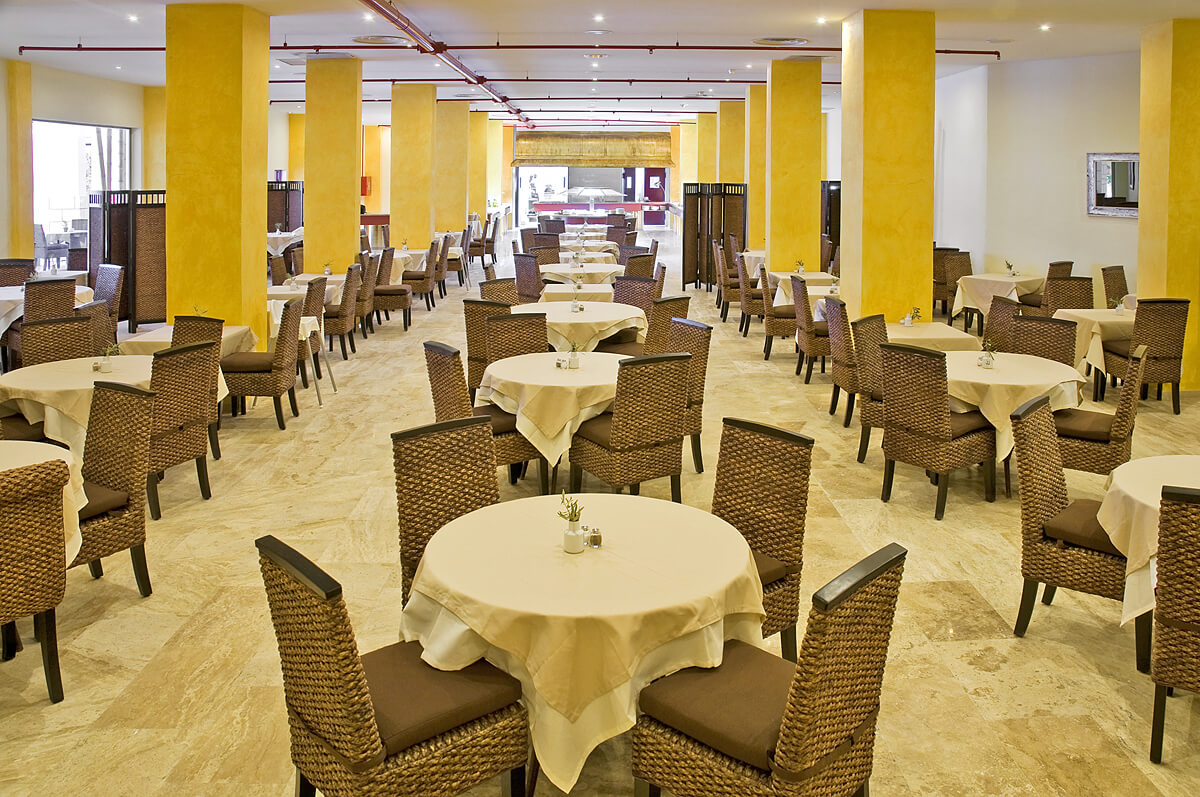 - śniadanie (8.00-10.30), obiad (13.00-15.00), kolacja (19.00-21.30) w formie bufetu; przekąski (11.00-12.30), kawa, herbata, ciasta i ciasteczka (15.30-18.30); lokalne napoje bezalkoholowe i alkoholowe w wyznaczonym barze (10.00-22.30).