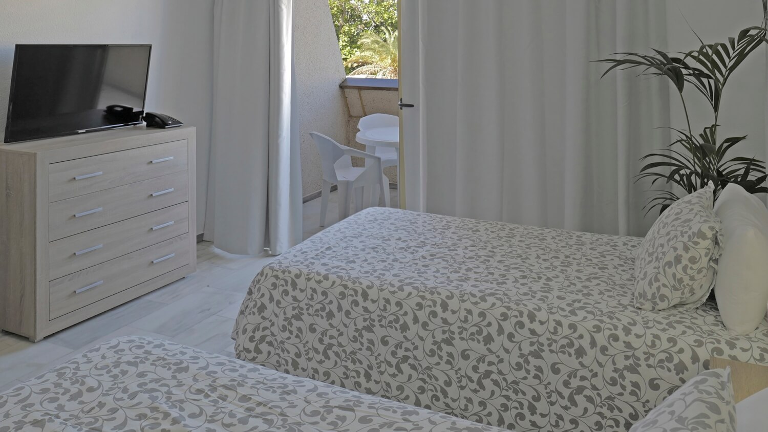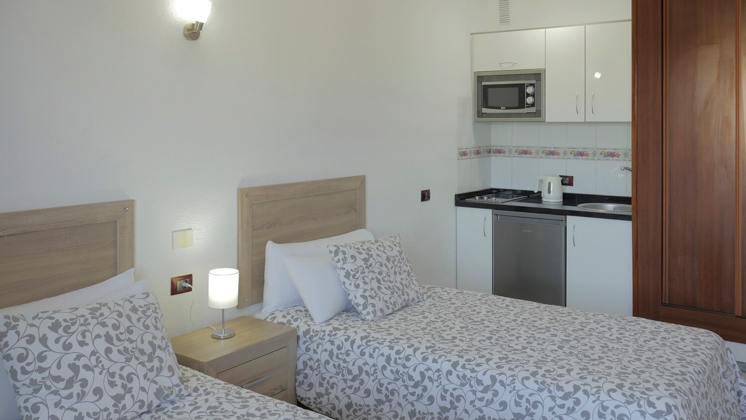 - 2-os. (możliwość 1 lub 2 dostawek), ok. 25 m², łazienka (wanna lub prysznic, wc), telefon, lodówka; za opłatą: sejf, telewizja (ok. 1 EUR/godz.); bezpłatne łóżeczko dla dziecka do 2 lat na zamówienie przed przyjazdem; balkon (stolik i krzesełka).