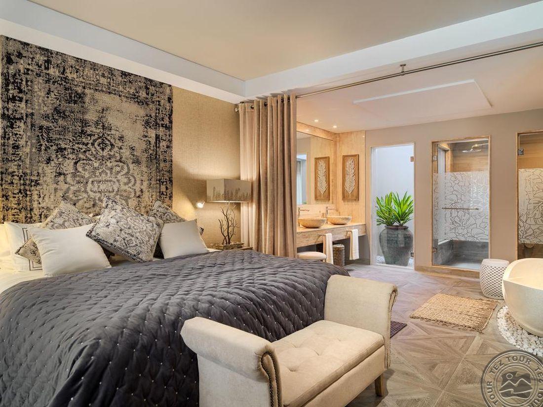 One Bedroom Grand Pool Villa tipo vilos (140 m2, maks. 2+0 asm.), privatus baseinas, išsidėsčiusios pirmoje golfo lauko linijoje, king size tipo lova.