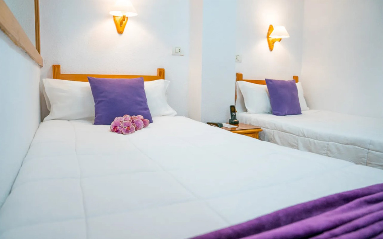 Small hotel with its own beach. There is a relaxation area with a swimming pool, sun loungers and a bar on site. Various types of entertainment are provided in the hotel and outside the territory. Recommended for families and active tourists.