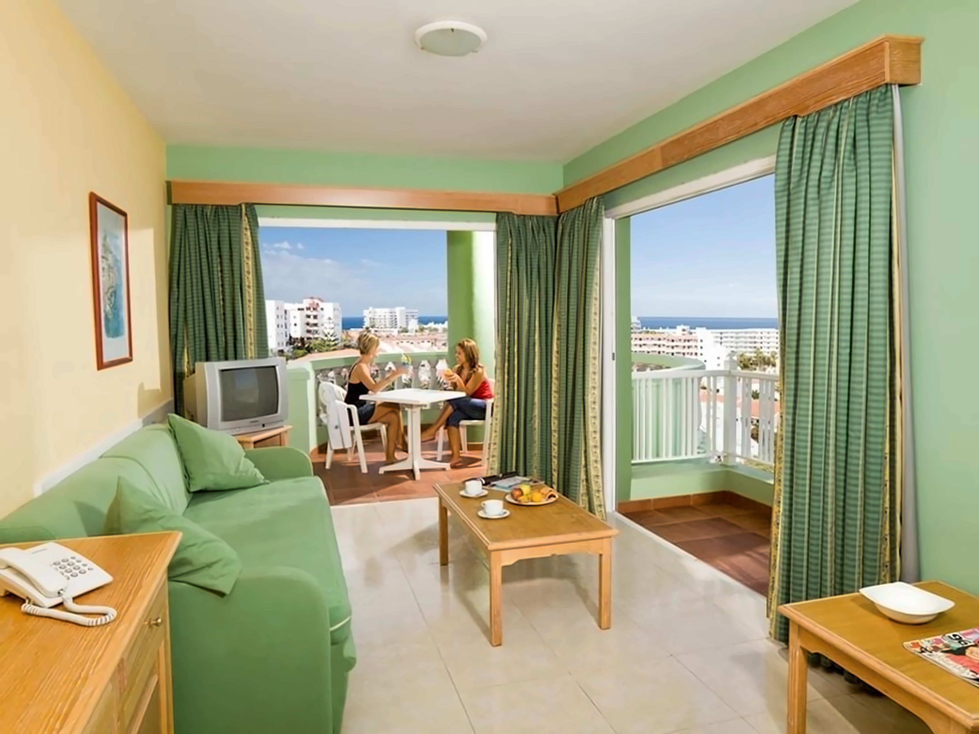 Villa De Adeje Beach is 500 meters from Torviscas Beach and a 12-minute drive from Tenerife South Airport. The studios and apartments are decorated in pastel colors and are equipped with a balcony, wooden furniture, a kitchenette with an electric oven, an electric stove and a refrigerator, a TV, a safe, and a private bathroom. The hotel has a buffet restaurant. It offers an outdoor pool with sun terrace, a gym, a wide range of entertainment, squash court, table tennis tables, games room, hot tub and sauna.