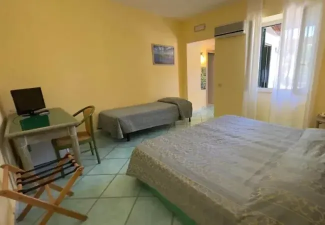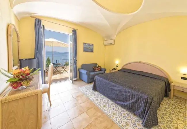 Iskijos saloje, 55 km iki Neapolio oro uosto (17 km iki Neapolio uosto + 32 km keltu nuo Neapolio iki Iskijos salos), 4,5 km iki Iskijos Porto miesto uosto, apie 1,5 km iki kito uosto, esančio Kazamičiolos rajone. Viešbutis įsikūręs ant jūros kranto.