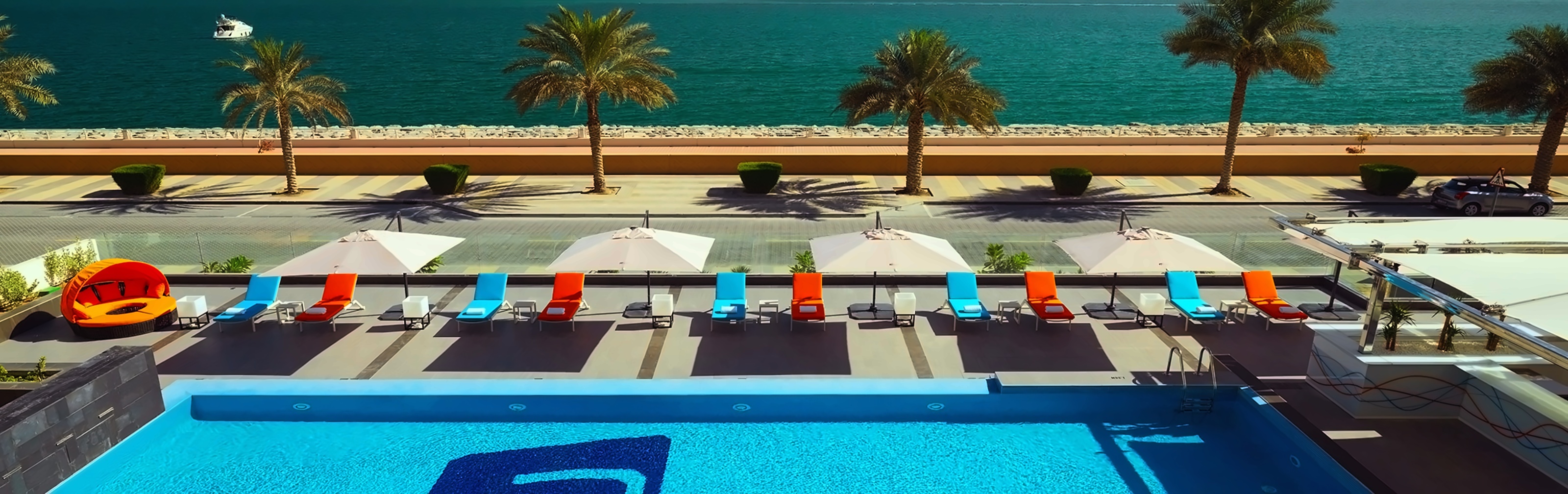 Naujas viešbutis įsikūręs prestižiniame Palm Jumeirah rajone. Šiuolaikiniai numeriai su ryškiais spalvų akcentais, stilingais interjerais ir puikus kainos ir kokybės santykis. Kompaktiška teritorija. Jūra yra rami, be bangų, patogu maudytis su vaikais. Rekomenduojamas šeimos ir jaunimo poilsiui.