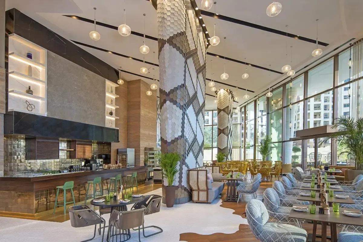 Viešbutis įsikūręs ant Džuimeiros Palmės salos „kamieno“, šalia smėlio paplūdimio, 32,5 km iki Dubajaus oro uosto.