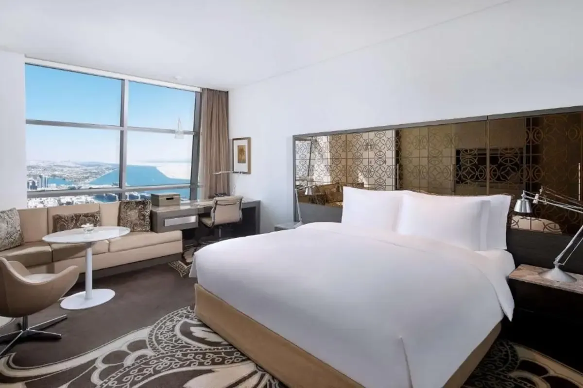 Nuostabius atsiliepimus turintis 5* viešbutis, esantis žymiojo 5 bokštų komplekso Abu Dabyje dalimi, iš kurio atsiveria vaizdas į Persijos įlanką. Viešbutyje yra architektūriniai sodai, lauko baseinai, privatus paplūdimys, SPA centras, treniruoklių salė. Galėsite nemokamai lankytis vienoje iš Abu Dabio lankytinų vietų – apžvalgos aikštelėje „Observation Deck at 300“. Siūlomos tokios veiklos: gyva muzika/šou, naktinis klubas/DJ, teminės vakarienės. Viešbutis turi net 12 restoranų, kuriuose galėsite mėgautis įvairių pasaulio virtuvių patiekalais. Rekomenduojama poroms ir šeimoms.