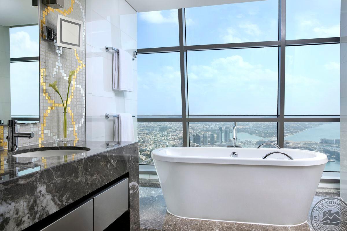 Nuostabius atsiliepimus turintis 5* viešbutis, esantis žymiojo 5 bokštų komplekso Abu Dabyje dalimi, iš kurio atsiveria vaizdas į Persijos įlanką. Viešbutyje yra architektūriniai sodai, lauko baseinai, privatus paplūdimys, SPA centras, treniruoklių salė. Galėsite nemokamai lankytis vienoje iš Abu Dabio lankytinų vietų – apžvalgos aikštelėje „Observation Deck at 300“. Siūlomos tokios veiklos: gyva muzika/šou, naktinis klubas/DJ, teminės vakarienės. Viešbutis turi net 12 restoranų, kuriuose galėsite mėgautis įvairių pasaulio virtuvių patiekalais. Rekomenduojama poroms ir šeimoms.