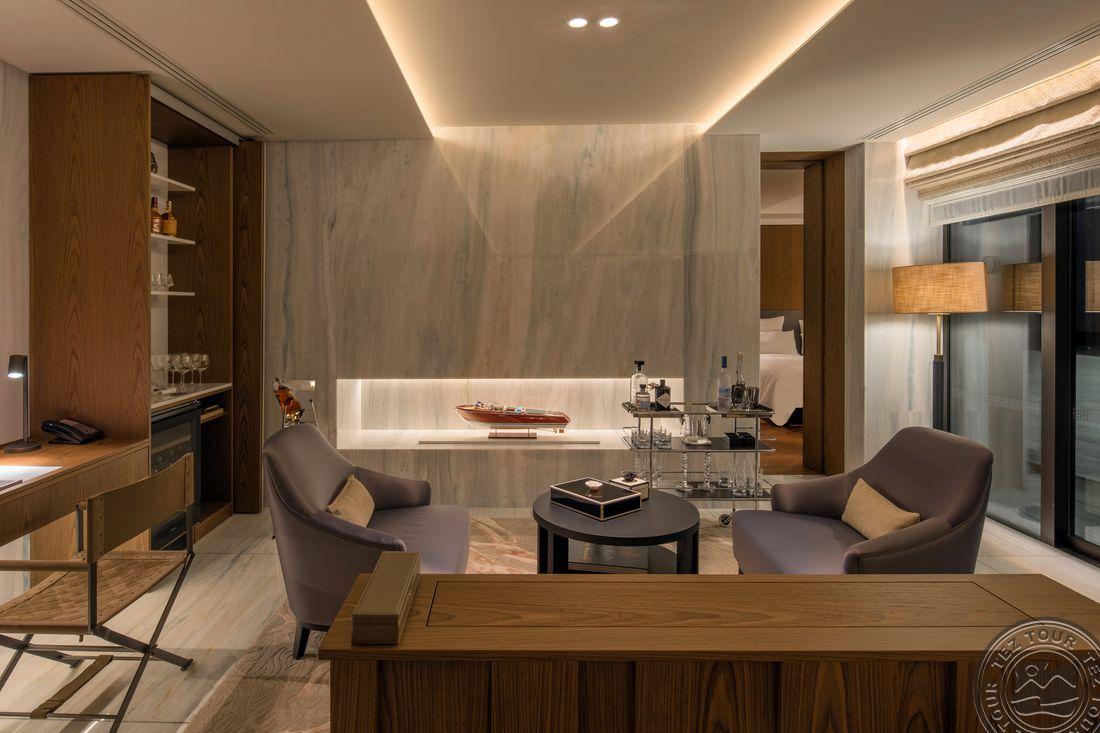 • Deluxe Suite with One Bedroom tipo numeriai (maks. 2+2 asm., 90 kv. m., svetainė ir miegamasis atskirti durimis, vonios kambarys, balkonas su vaizdu į jūrą);