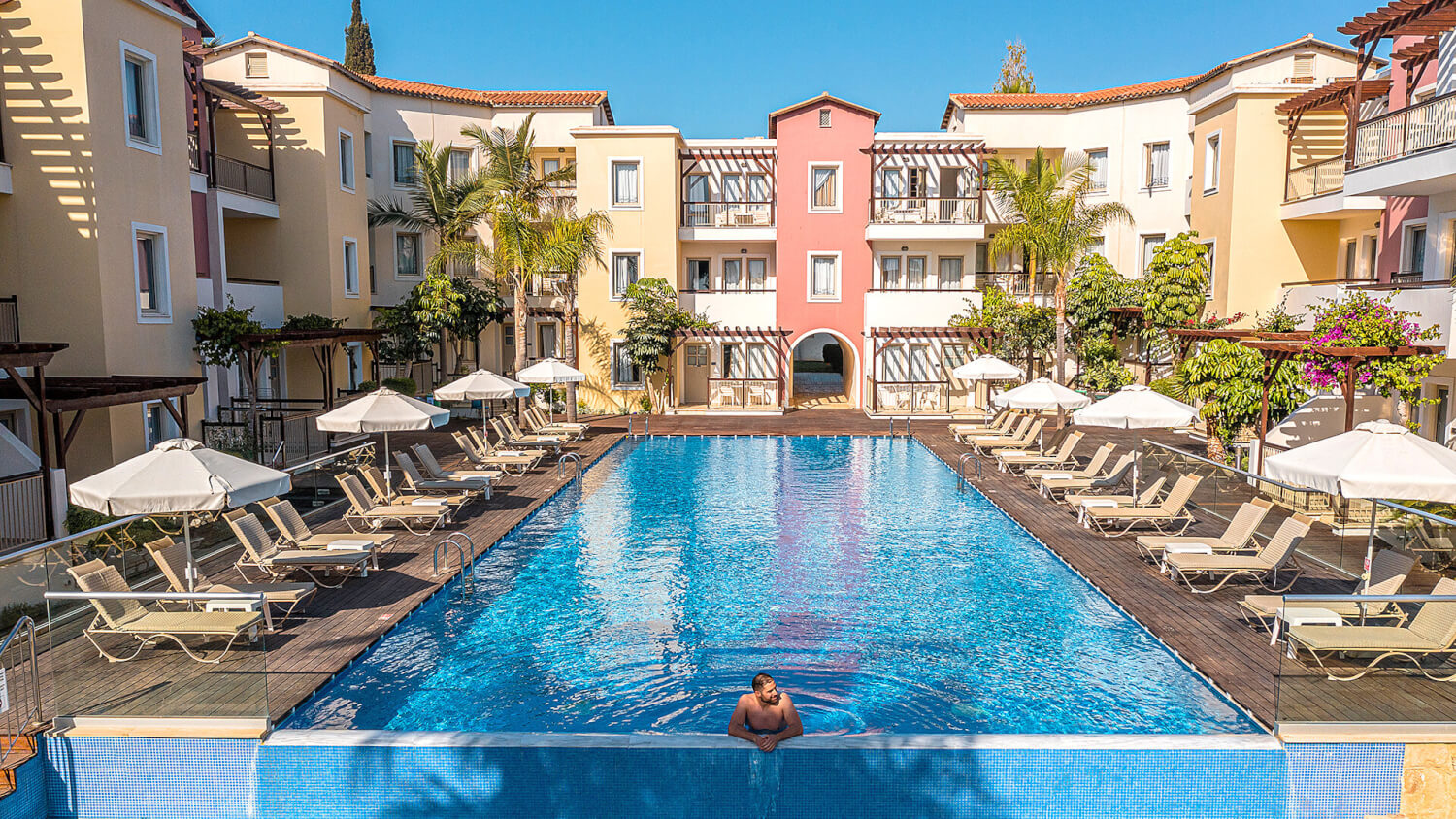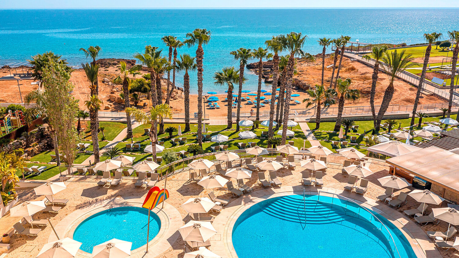 Perneros miestelyje, ant jūros kranto įsikūręs šeimų viešbutis su tikrai didele teritorija. Iki Protaro miesto 1 km. Viešbutis senesnis, jau norėtųsi renovacijos, stilistika sena. Dirba AI principu. One Bedroomm room sea view - su mini virtuvėle, tame pačiame kambaryje ir lovos. Taip pat dar atskirai vienas miegamasis su durimis. Tvarkinga, švaru, virtuve pilnai įrengta. Studio - viena bendra erdvė su mini virtuve. Pats viešbutis 3 -jų aukštų, liftų nėra. Turi paplūdimio tinklinį. Išėjus iš viešbučio, kitoje pusėje yra teritorija, kaip vilų kvartalas, su parkingu kiekvienai vilai. Apžiūrėjome Napheli vilą, kuri talpina iki 10 žmonių. Vilos viršuje 3 miegamieji, apačioje vienas miegamasis, didele svetainė, virtuvė, valgomasis. Be galo didelė terasa su baseinu, gultais. Vaizdas į jūrą, tik prieš ją matosi plentas. Didelėms kompanijoms puikus pasirinkimas.