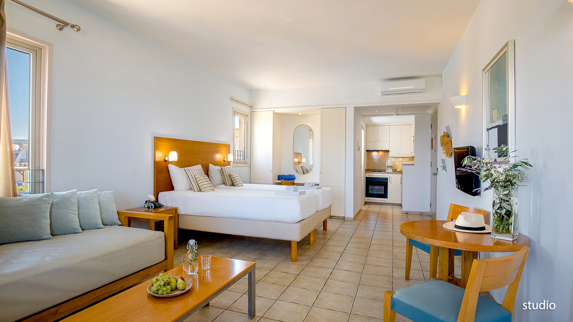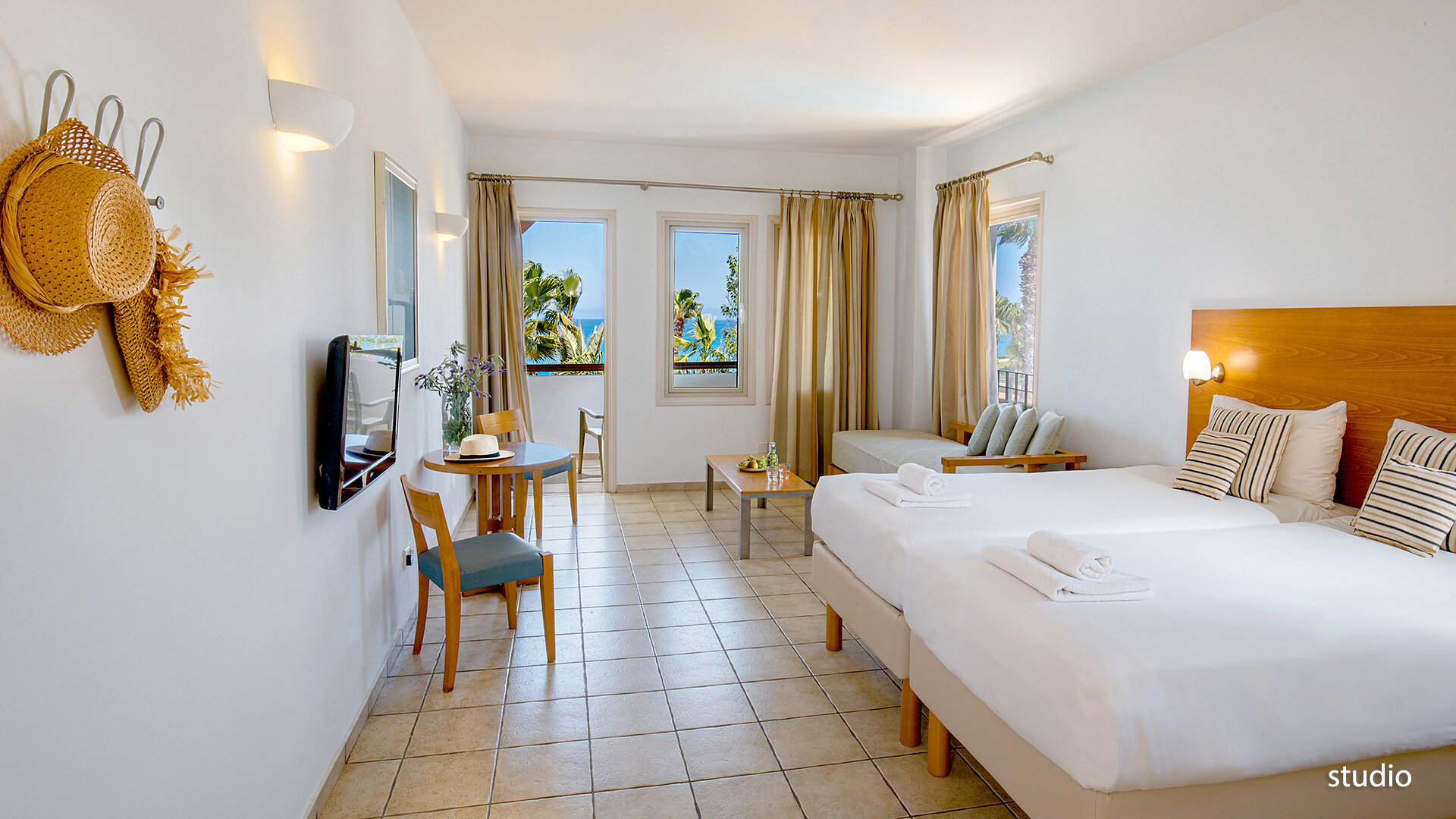 • Studio with Sea View tipo numeris (maksimaliai 3 asmenims, 2 viengulės lovos ir 1 sofa, su balkonu ir vaizdu į jūrą, 32 m2)