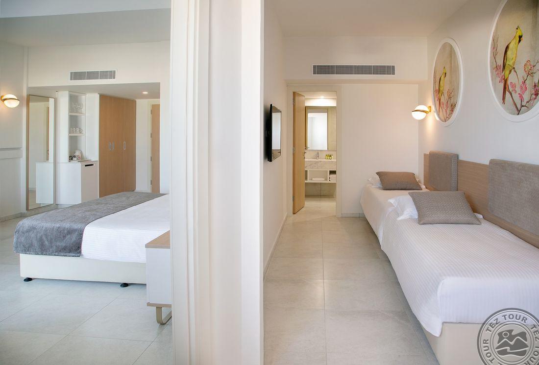 Skoningas, gražus. Centras apie 15 min pėstute. Šalia vieno gražiausių Nissi paplūdimio. 2019 m. pastatytas. 300 kambarių, visi su balkonu. Superior kambariai yra žemiausia kategorija. Turi kambarių pritaikytų neįgaliesiems. Yra visi maitinimo tipai. Pasirinkus HB, vakarienę galima iškeisti į pietus. Šildomas tik vidaus baseinas. Soft animacija, yra vaikų klubas. Lankymo metu buvo daug šeimų su vaikais. Matėm superior sea view kambarius, labai geri ir gražūs. Daugumas kambarių su voniomis. Labai geras maistas. Executive kambarys yra miegamasis atskirtas durimis ir svetainė. Vaikai miega ant išlankstomų sofų-lovų. Yra kur išeiti pasivaikščioti. Prabangesniam poilsiui.