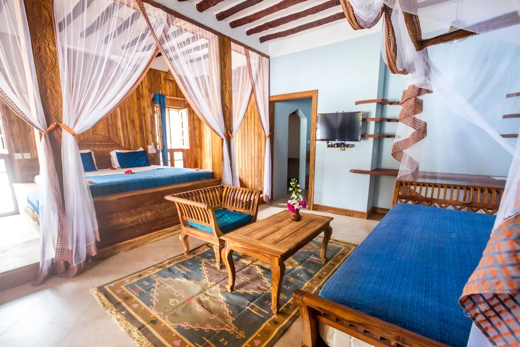 Šalia paplūdimio. Atstumas iki Kendwa vietovės centro yra apie 1 km, o iki Abeid Amani Karume oro uosto – 60 km.