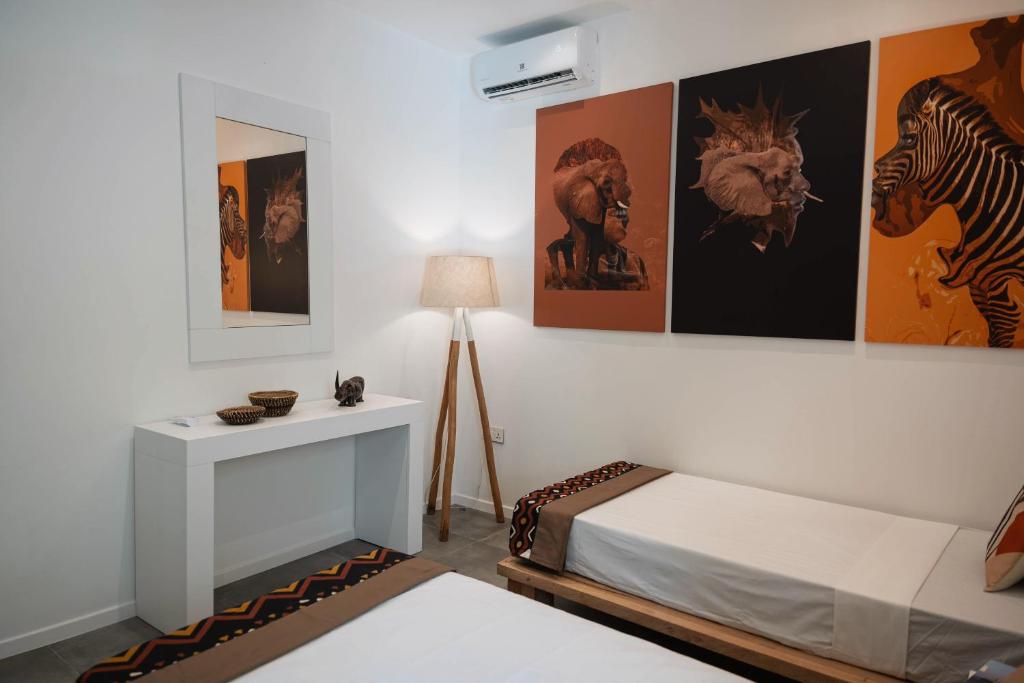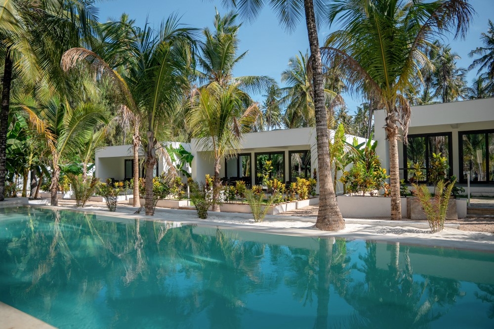 The complex is located in a century-old palm grove, just 350 meters from the beach. The hotel features two swimming pools and a restaurant. A fitness center and massage therapist are also available. Villas are available for accommodation.