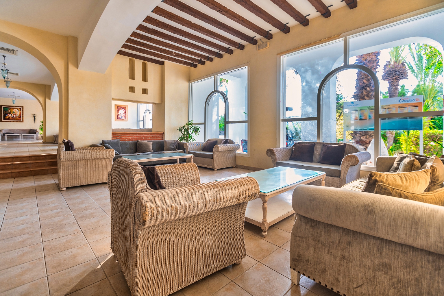 The hotel's restaurants serve international and local cuisine, including themed dinners and show cooking. Several bars offer refreshing drinks, cocktails and local alcoholic beverages. Guests can enjoy a variety of entertainment and sports activities, such as tennis, water sports, mini golf and animation shows. The hotel has several swimming pools, including an indoor one, as well as a spa with a hammam, massage and beauty treatments. For guests' convenience, a mini train is available to take them to the beach.